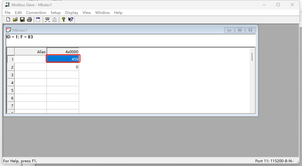 打開Modbus Slave軟件,引用USB轉(zhuǎn)232轉(zhuǎn)換器的COM端口號(hào)COM11