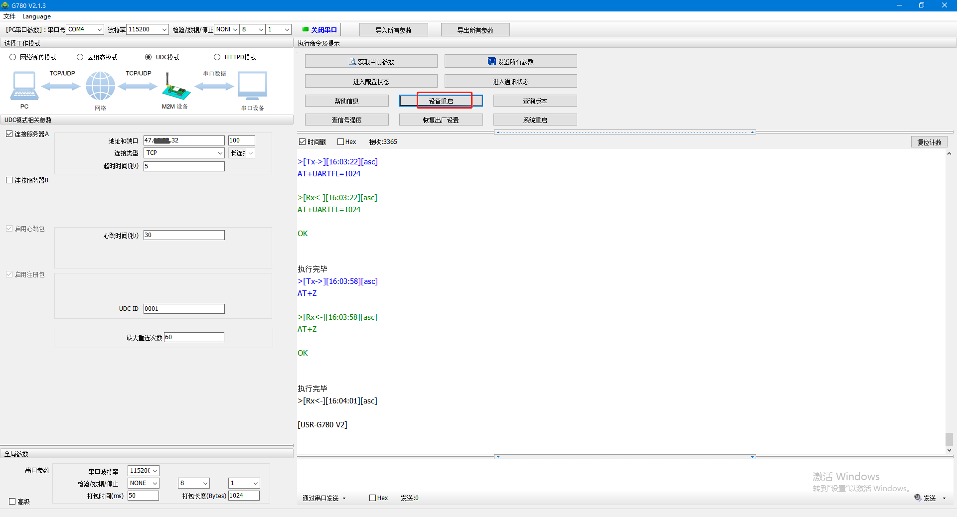 USR-G780 V2 協(xié)議透?jìng)?UDC 模式示例