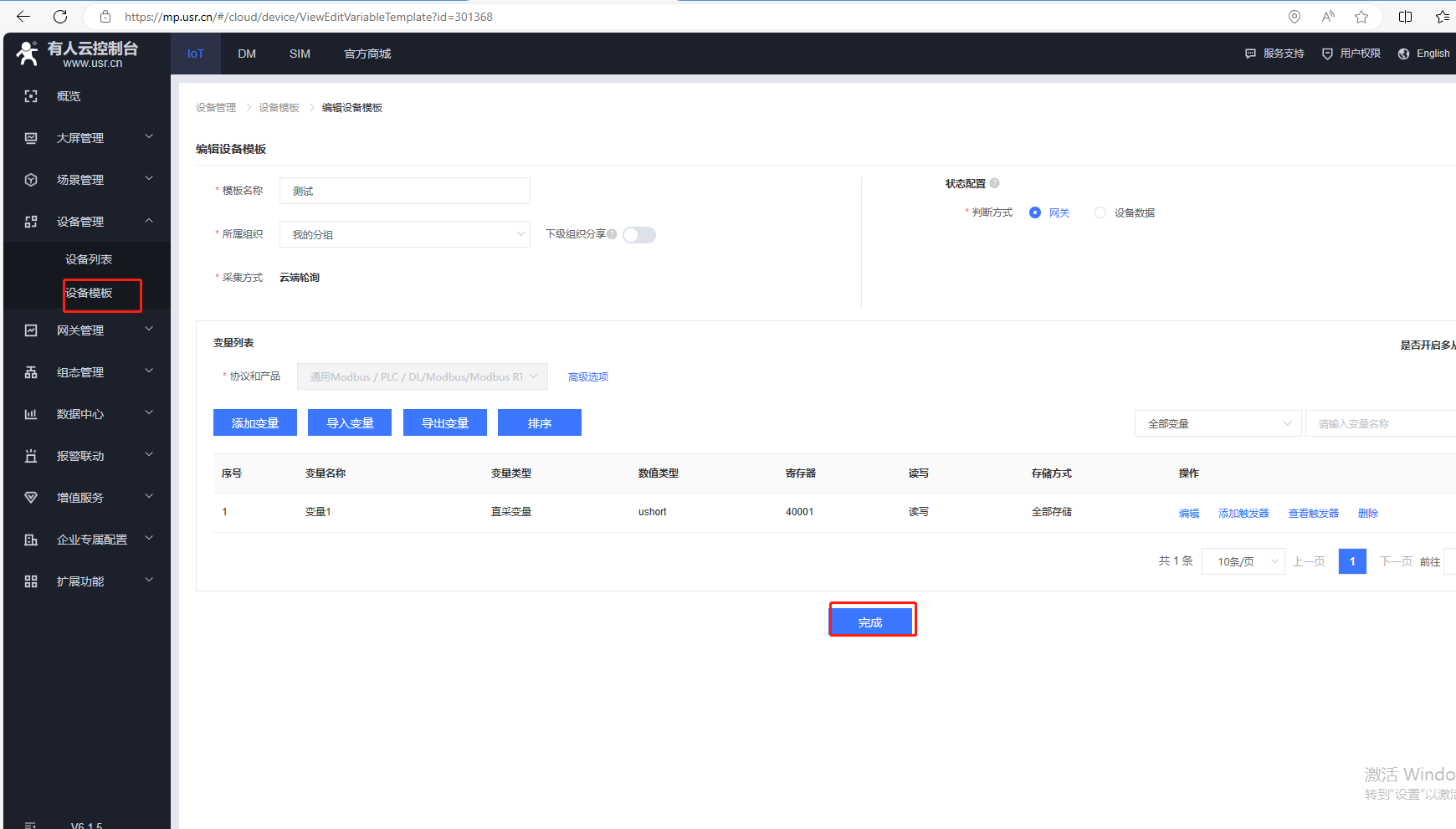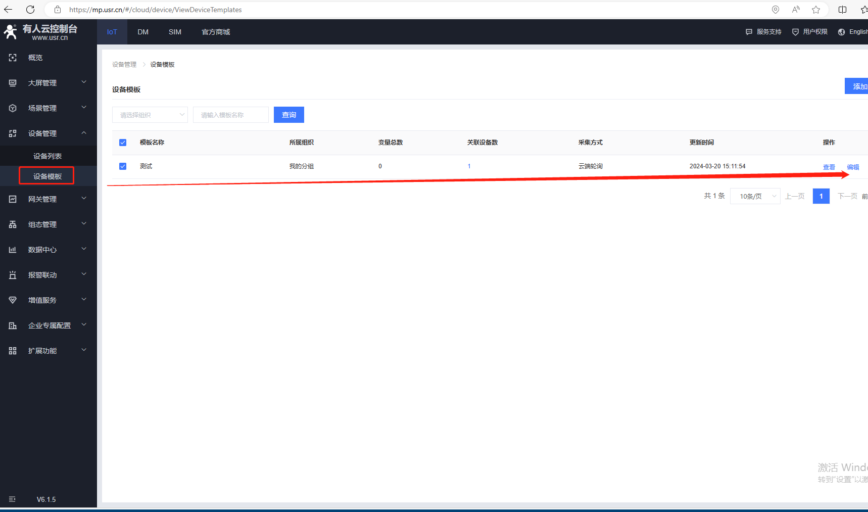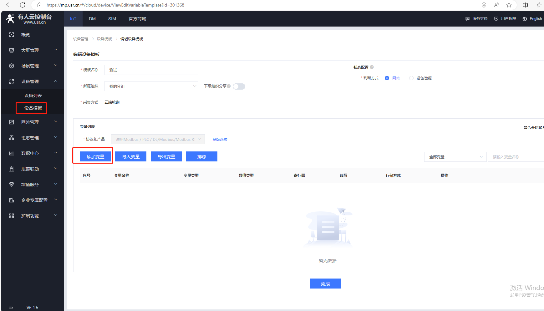 (7)添加變量,點(diǎn)擊設(shè)備管理,點(diǎn)擊設(shè)備模板,點(diǎn)擊編輯。