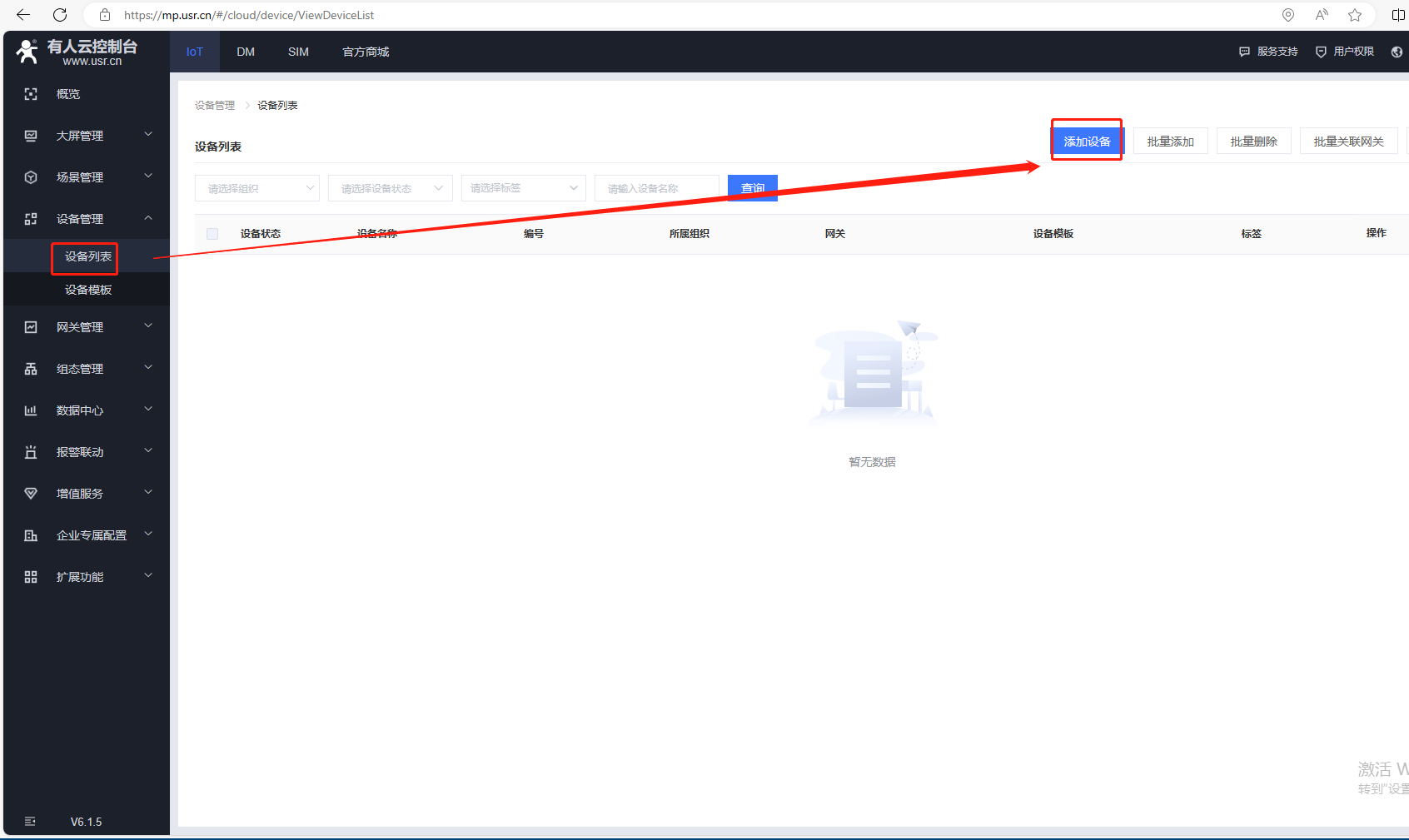 (4)添加設(shè)備,點(diǎn)擊設(shè)備管理,點(diǎn)擊設(shè)備列表,點(diǎn)擊添加設(shè)備。