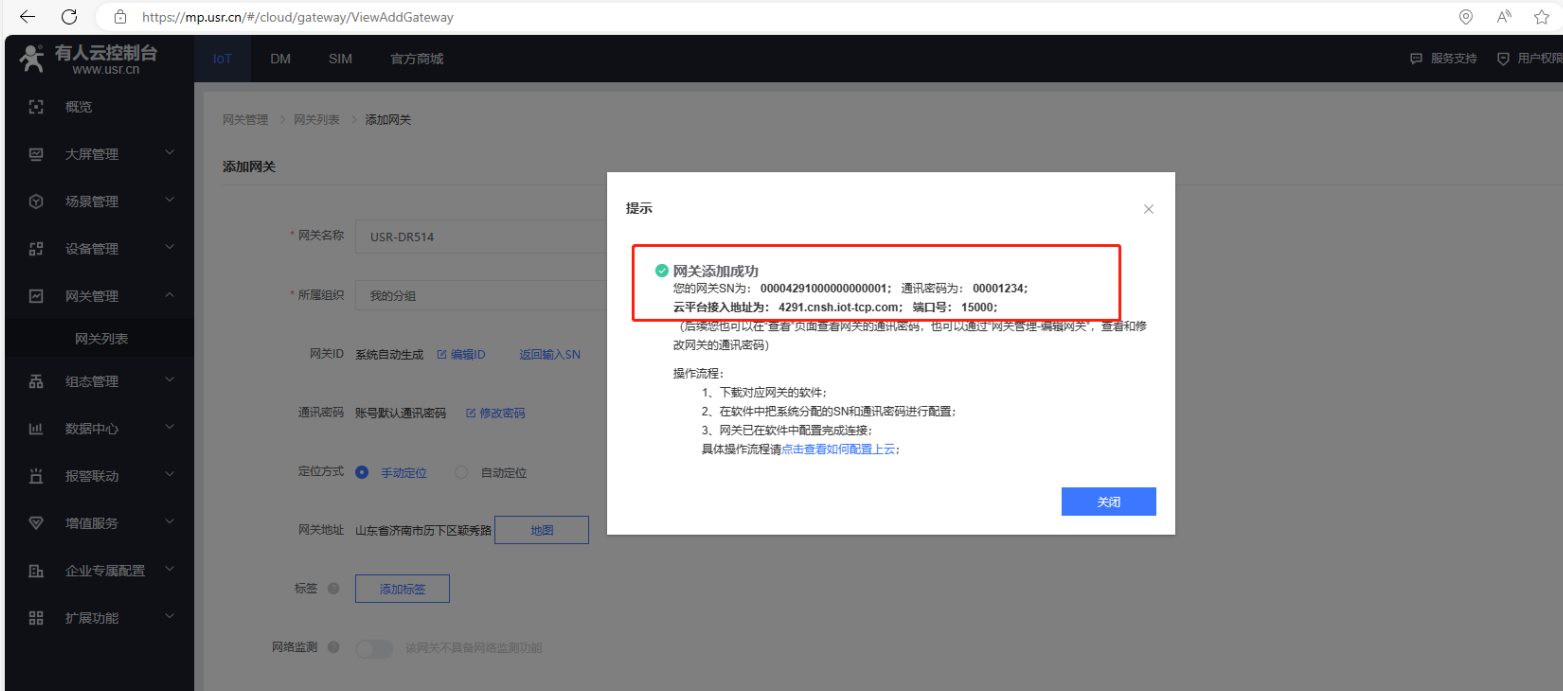 2、選擇邊緣端網(wǎng)關(guān),添加的USR-DR514設(shè)備