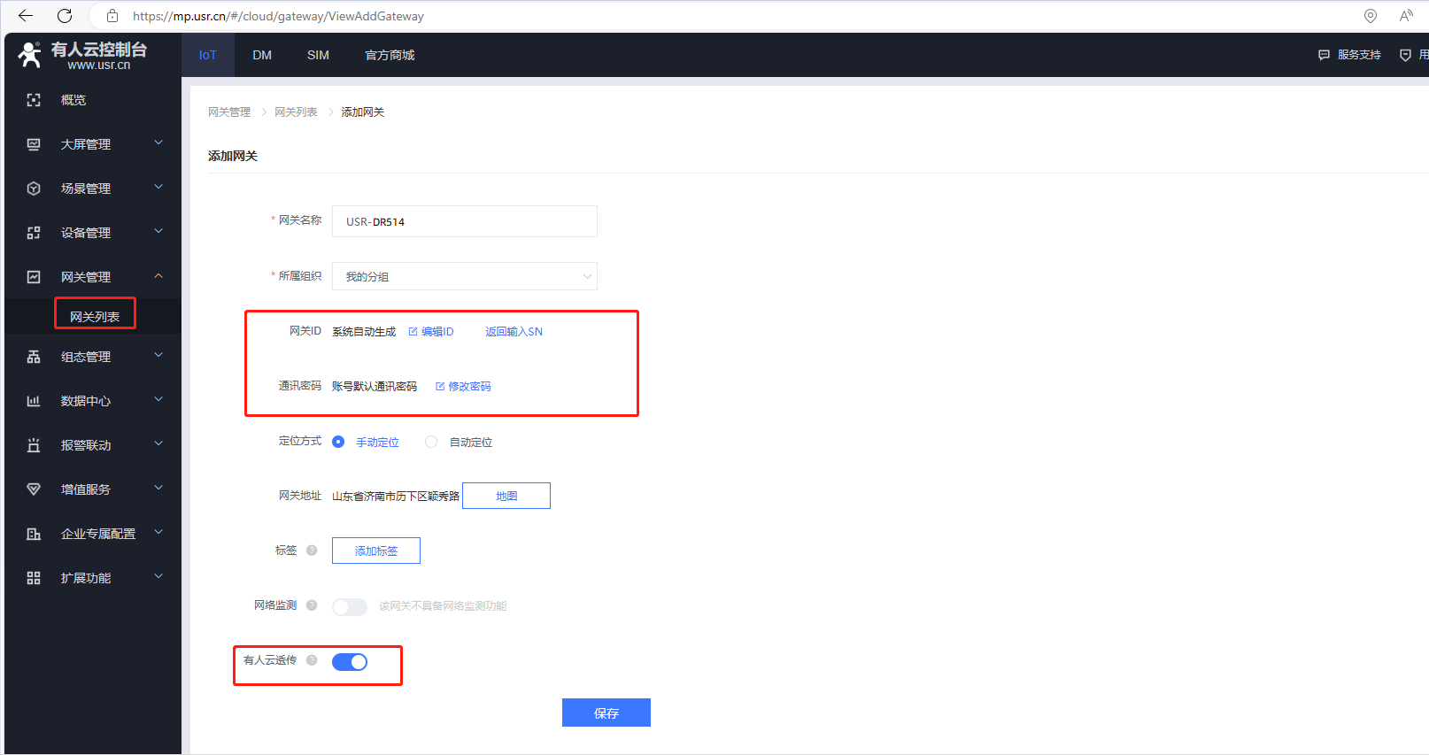 (2)USR-DR514不支持SN上云,就點擊SN不支持,點這里,用自動生成的ID方式上云,在有人云上添加設(shè)備,勾選有人云透傳。