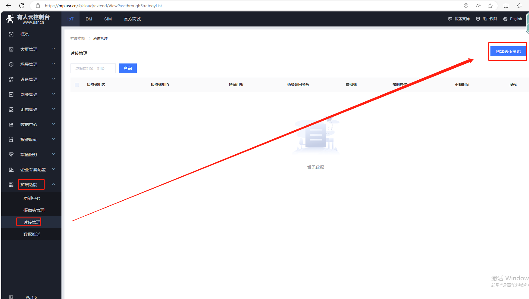 1、擴(kuò)展功能,透傳管理,創(chuàng)建一個透傳策