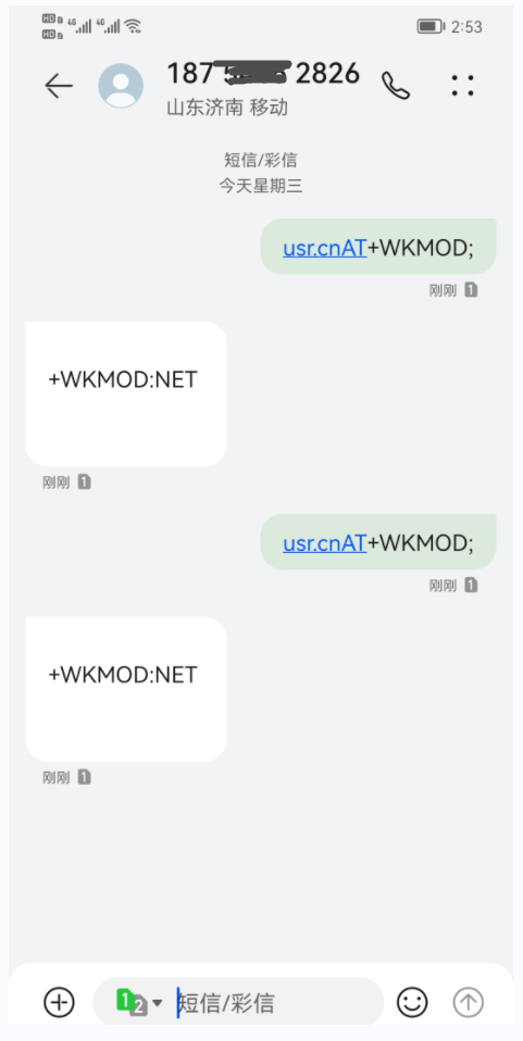 以查詢 SocketA 參數(shù)為例,發(fā)送 AT 指令。 以查工作模式為例,發(fā)送 AT 指令,從手機(jī)端向模塊發(fā)送usr.cnAT+WKMOD;(注意該字符串最后有英文格式的分號),模塊接收后, 會返回響應(yīng)信息如下圖: