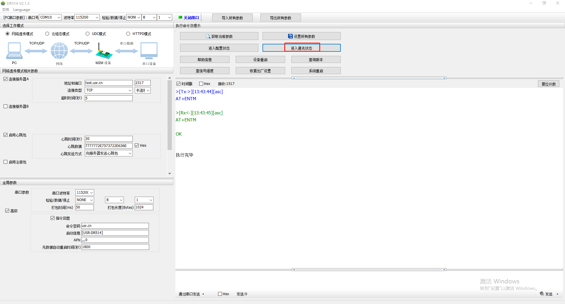 命令密碼默認(rèn)是usr.cn,USR-DR514用設(shè)置軟件讀取參數(shù),勾選高級,可以從高級內(nèi)容中,查詢或修改命令密碼。