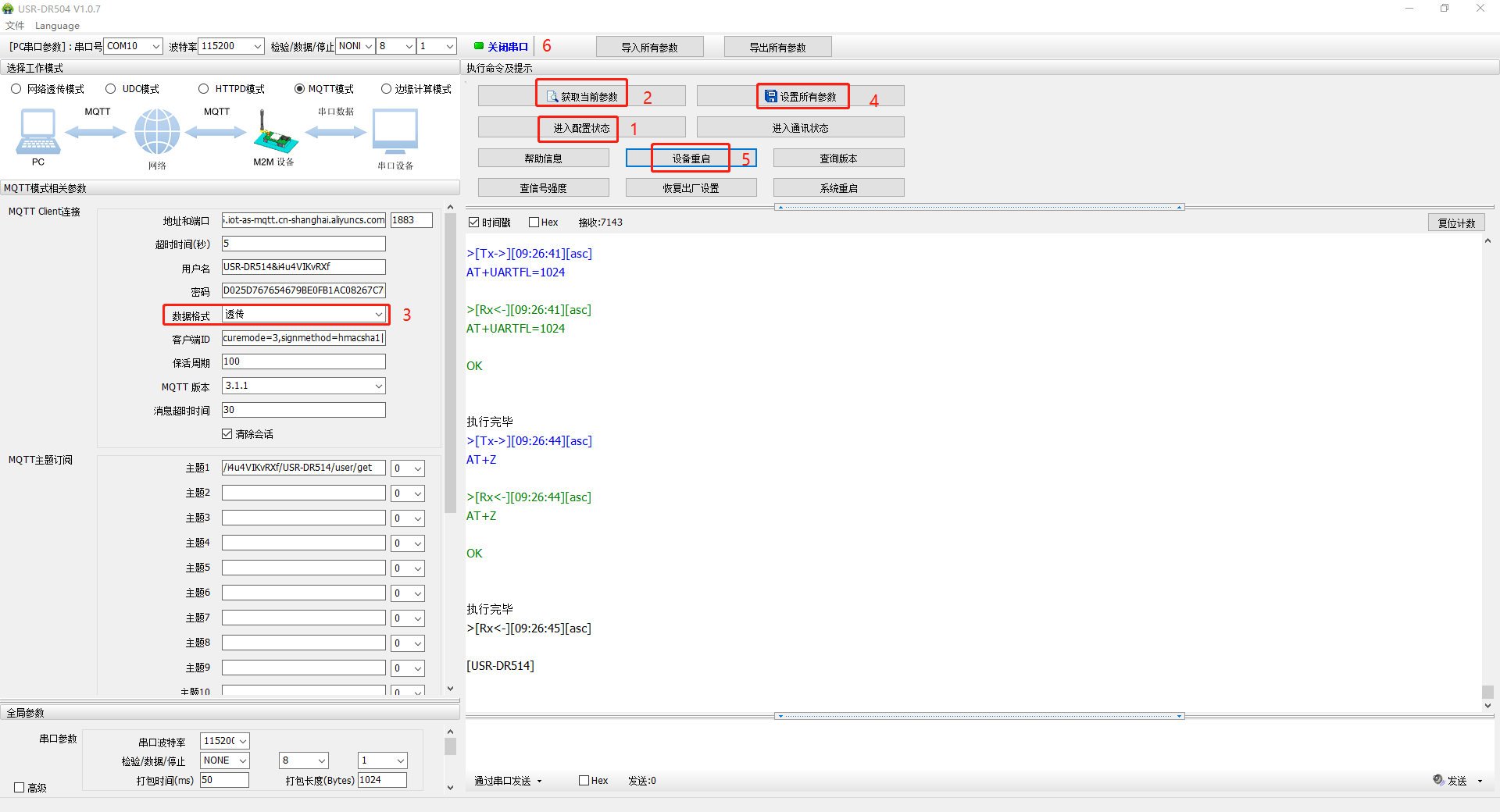 (3)轉(zhuǎn)換USR-DR514連接阿里云的密碼