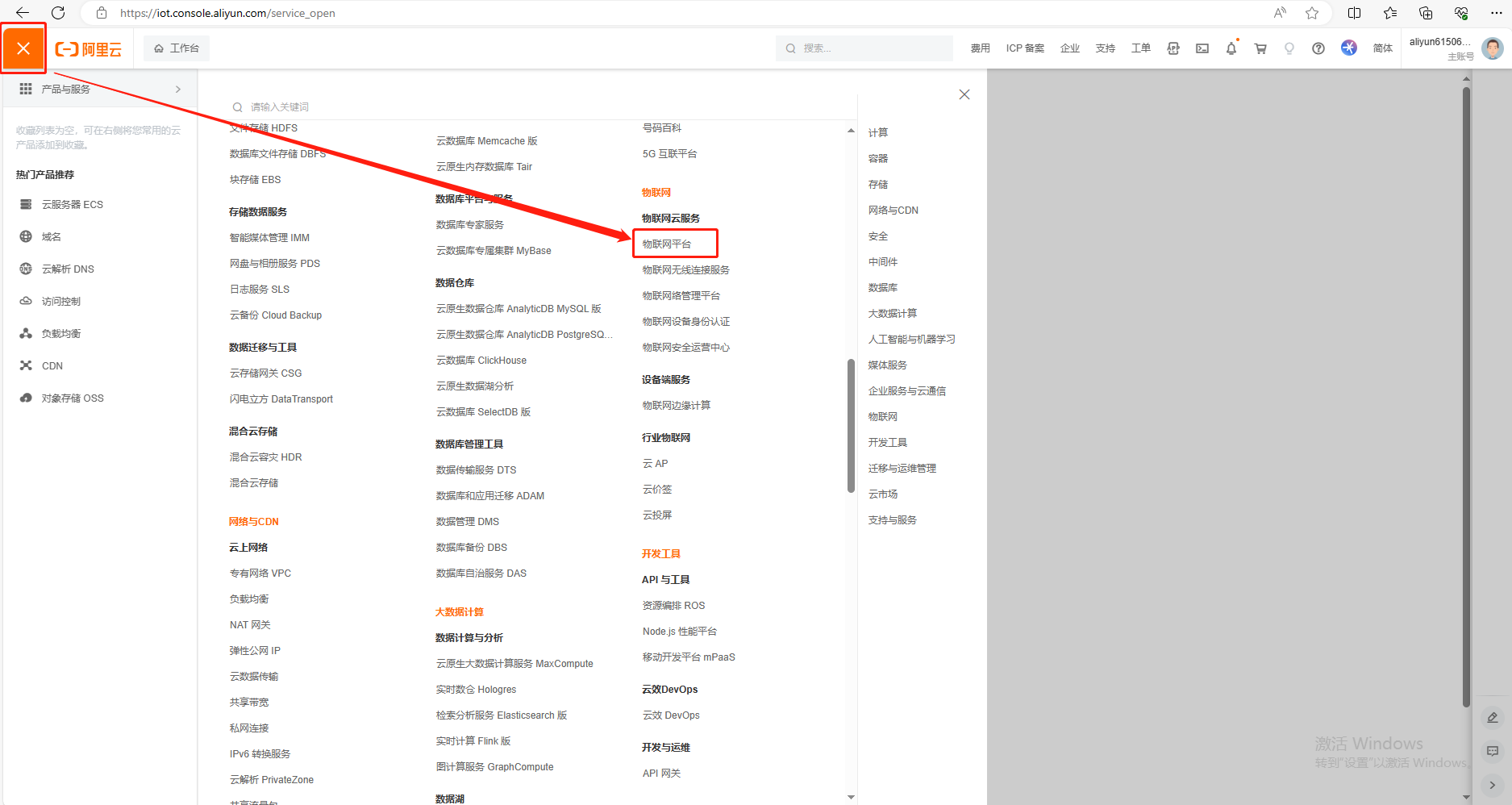 (2)找到物聯(lián)網(wǎng)平臺(tái)