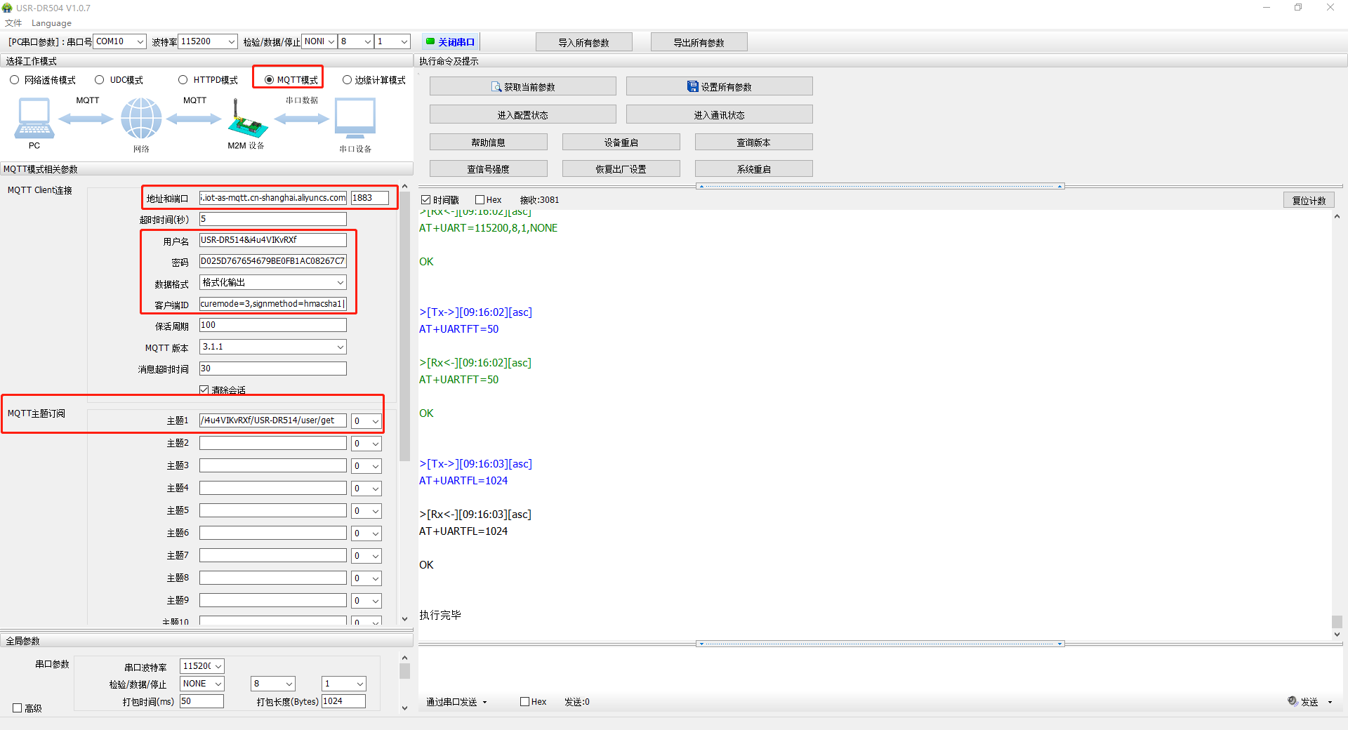 USR-DR514 的MQTT模式連接阿里云示例