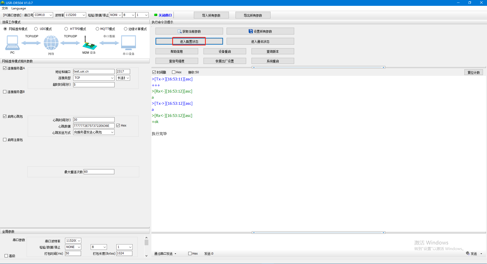 2、打開(kāi)串口,點(diǎn)擊進(jìn)入配置狀態(tài)