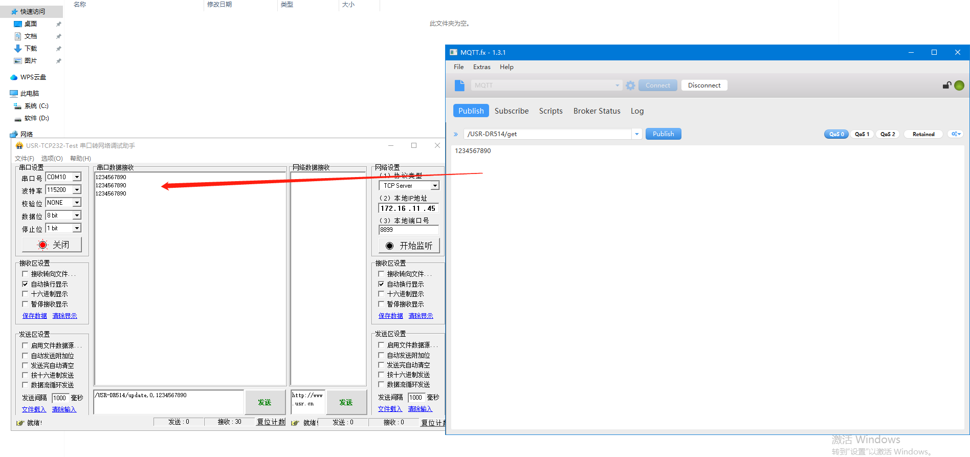 6、MQTT.fx軟件推送,USR-DR514訂閱測試(數(shù)據(jù)格式是透傳)