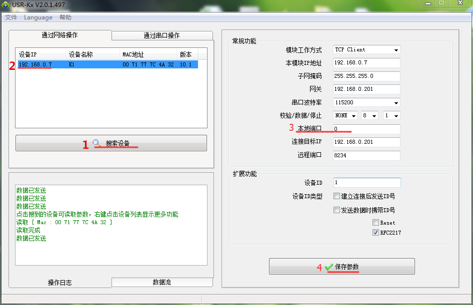 方法:可通過一個(gè)網(wǎng)絡(luò)調(diào)試軟件(軟件點(diǎn)擊此處下載),將IP地址和端口設(shè)置與當(dāng)前使用到模塊參數(shù)相同。使用軟件模擬客戶端去連接服務(wù)器,查看是否能連接上。也可以將服務(wù)器重啟。