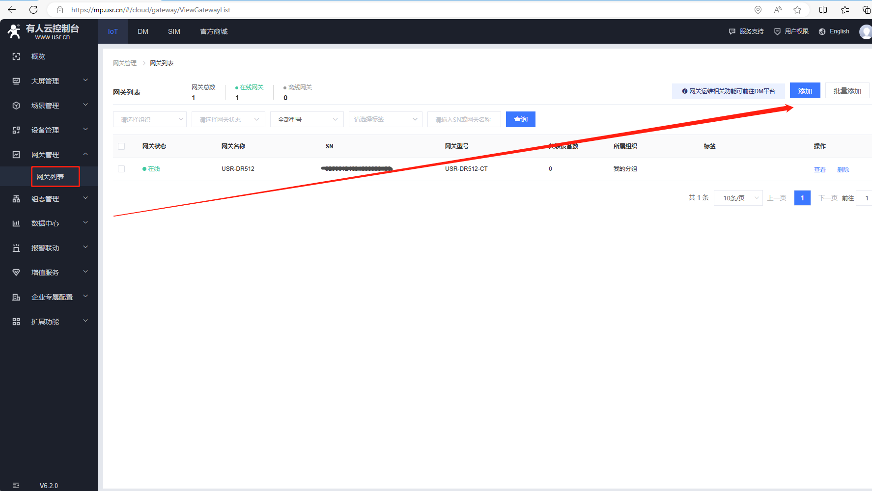 1、點擊網(wǎng)關(guān)管理,網(wǎng)關(guān)列表,點擊添加,點擊單個添加。