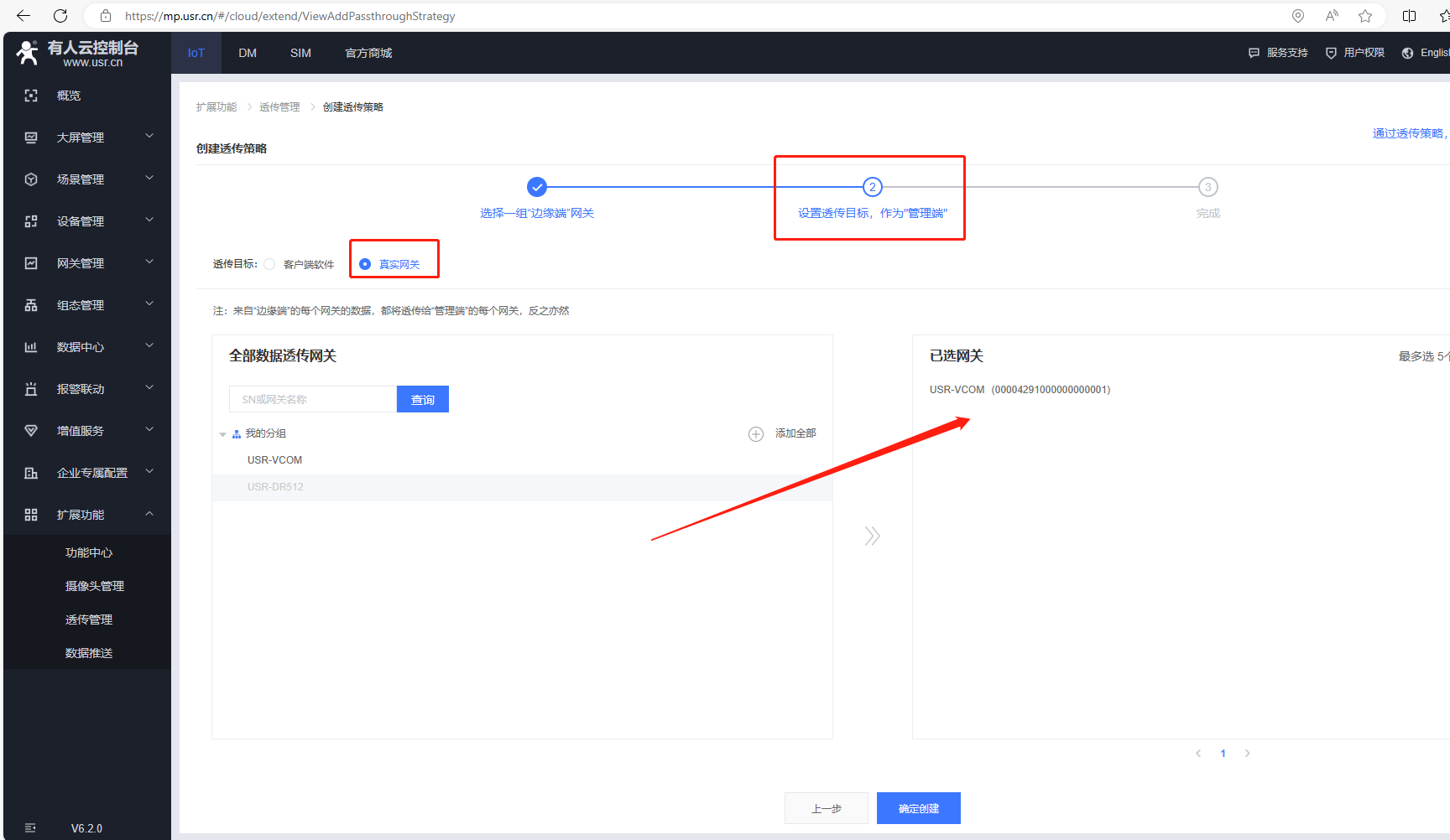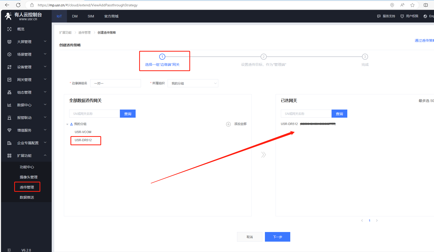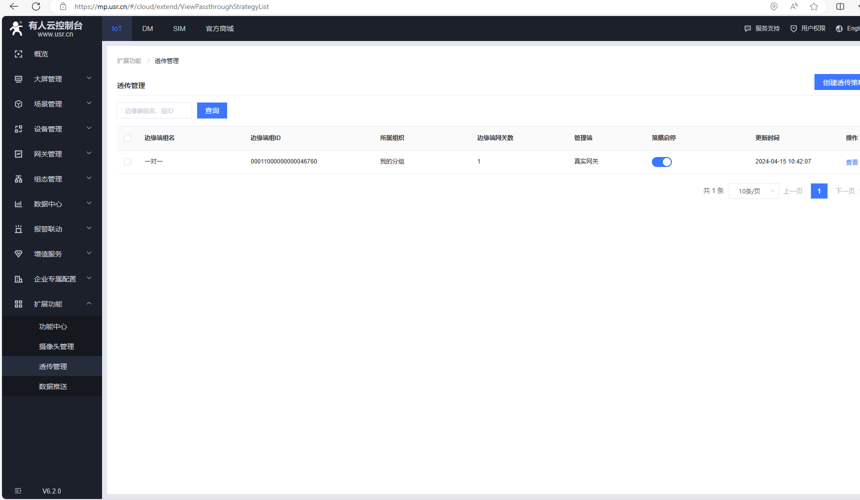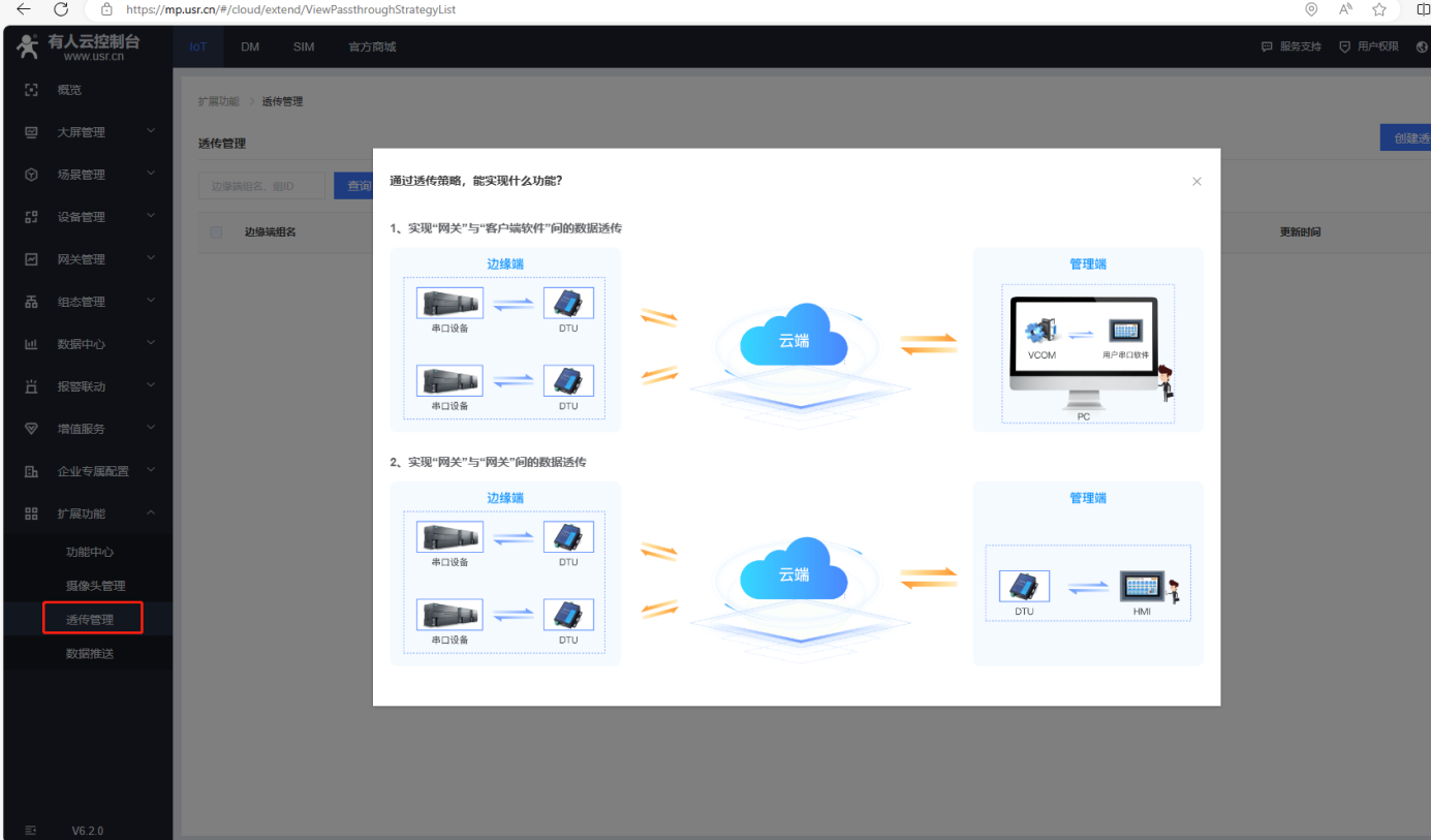 1、擴(kuò)展功能,透傳管理,創(chuàng)建一個透傳策