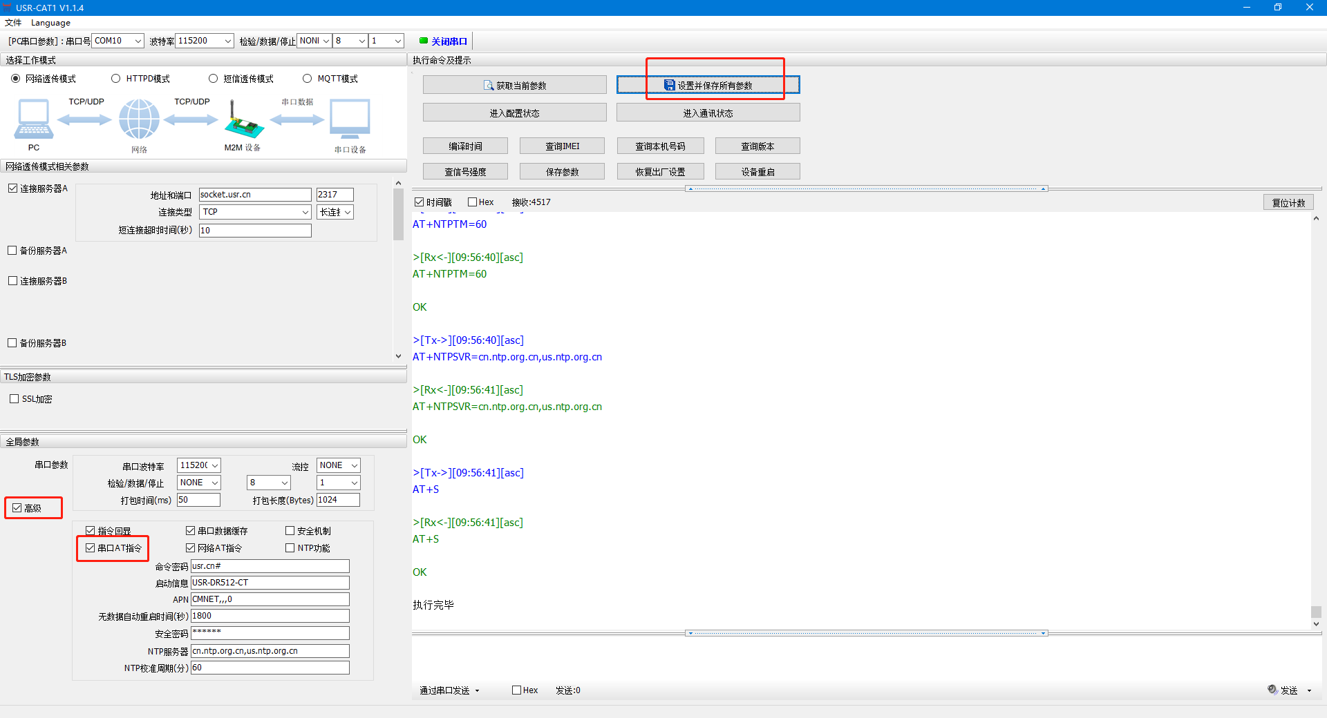 5、默認(rèn)串口AT指令功能是開啟,不需要設(shè)置參數(shù),點(diǎn)擊進(jìn)入通訊狀態(tài)就可以。如果需要修改參數(shù),最后才點(diǎn)擊設(shè)置保存所有參數(shù)。