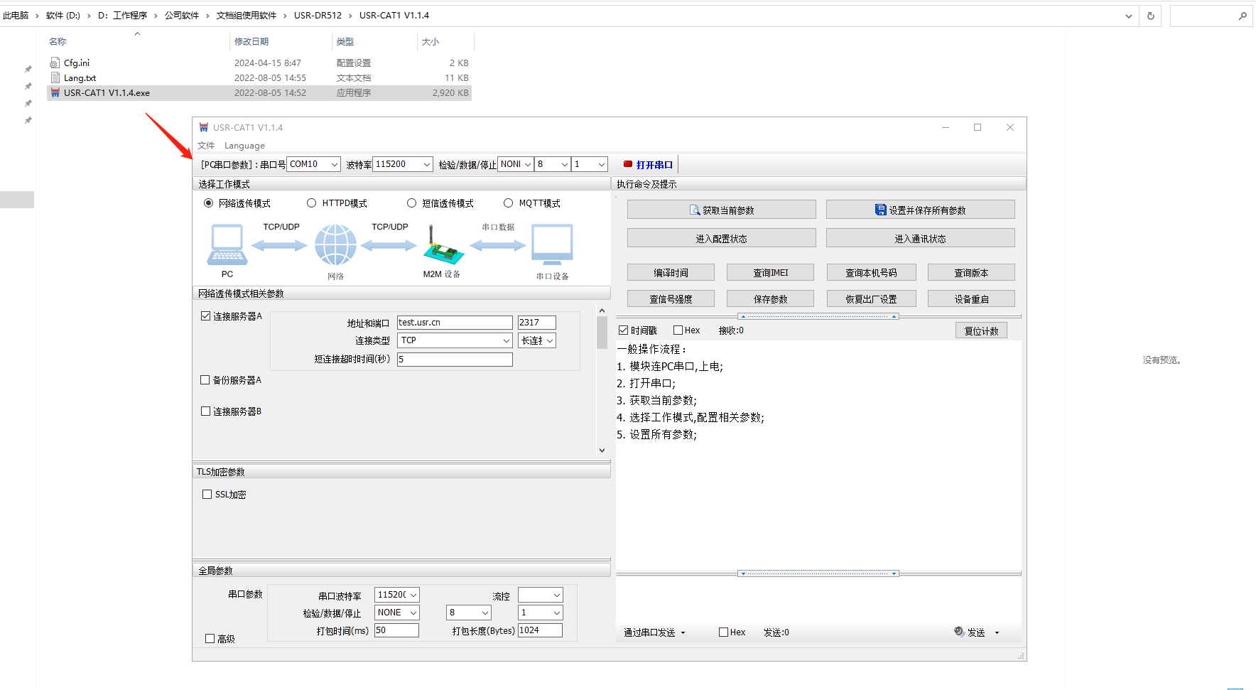 1、打開USR-DR512設(shè)置軟件USR-CAT1 V1.1.4.exe