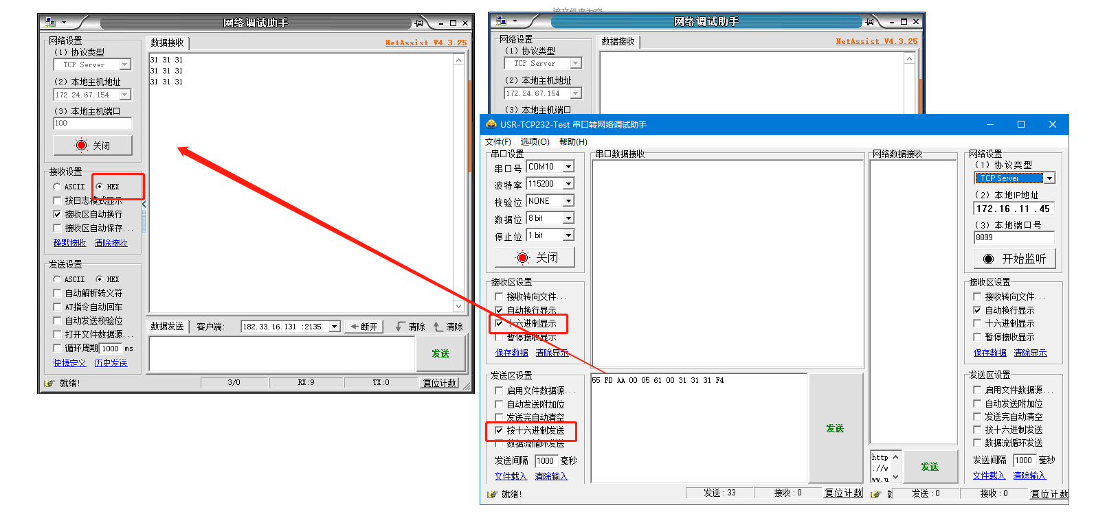 按照規(guī)則計(jì)算,得出向服務(wù)器B(參數(shù)區(qū)用62 00)發(fā)送數(shù)據(jù)32 32 32是HEX格式的:55 FD AA 00 05 62 00 32 32 32 F8