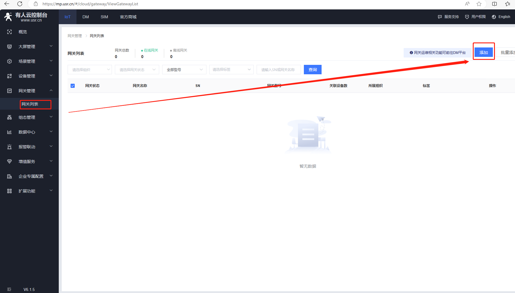 (1)點(diǎn)擊網(wǎng)關(guān)管理,網(wǎng)關(guān)列表,點(diǎn)擊添加,點(diǎn)擊單個(gè)添加。