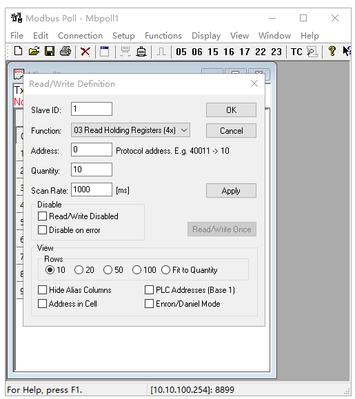 四、Modbus TCP/RTU 協(xié)議互轉(zhuǎn)功能調(diào)試