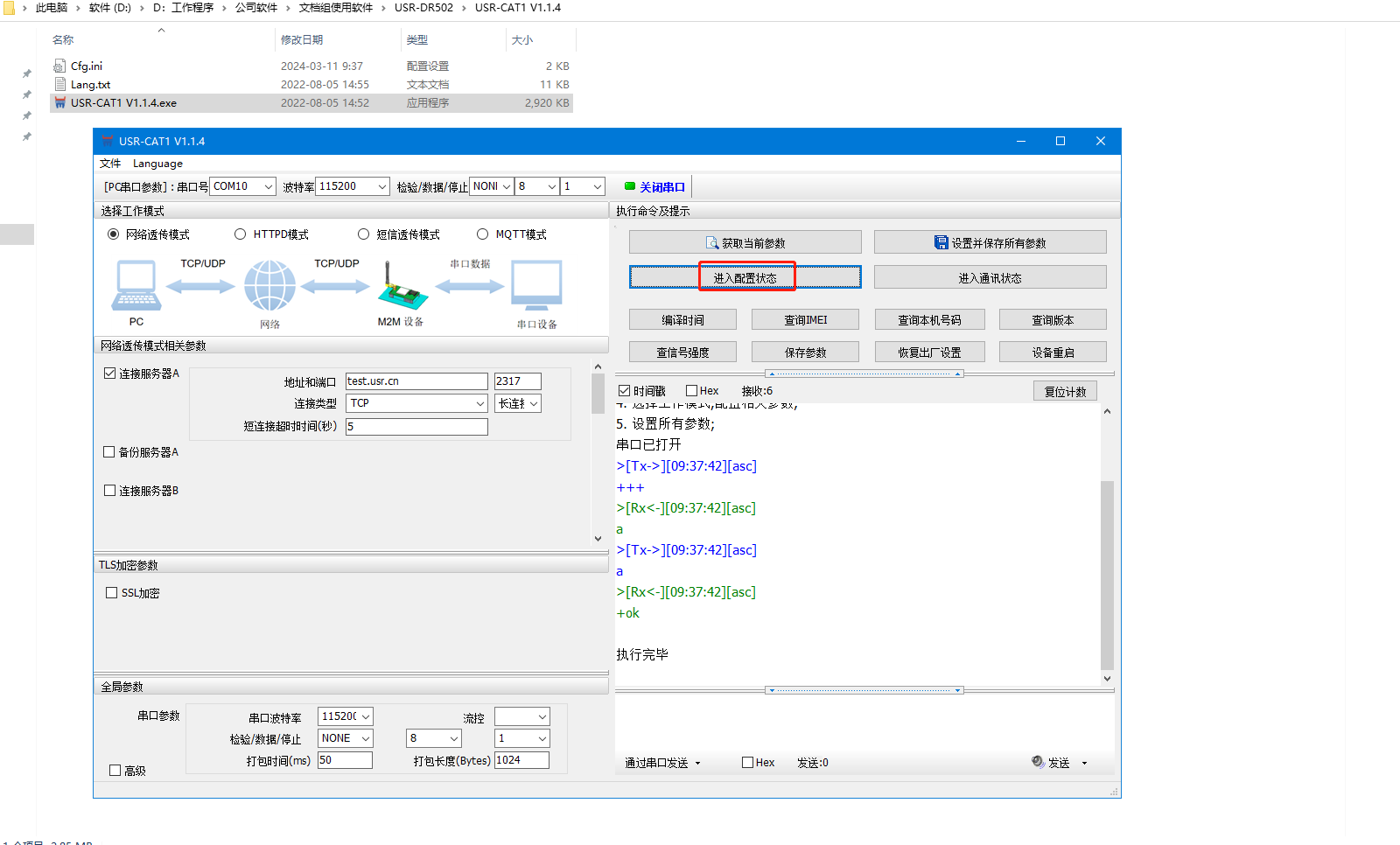 2、打開串口,點擊進(jìn)入配置狀態(tài)