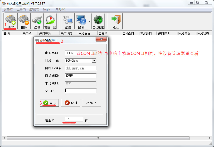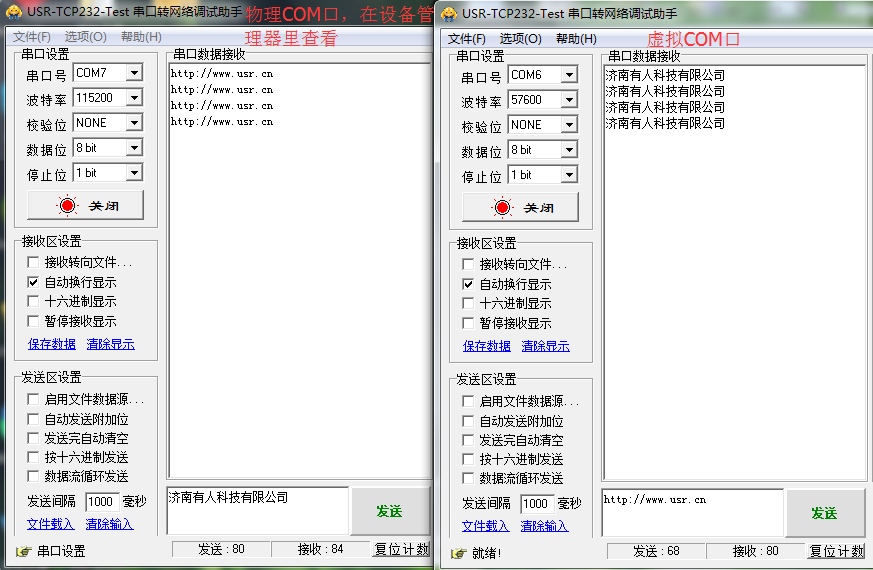 1. COM7為物理COM口,在電腦的設(shè)備管理器里可查看。COM6為虛擬串口軟件虛擬COM口。