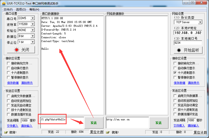 1:HTTPD_Client主要應(yīng)用于網(wǎng)頁服務(wù)器,GPRS模塊發(fā)送的數(shù)據(jù),可以透傳到網(wǎng)頁服務(wù)器接收。網(wǎng)頁服務(wù)器返回?cái)?shù)據(jù)給C322模塊的串口。用于監(jiān)控串口設(shè)備。