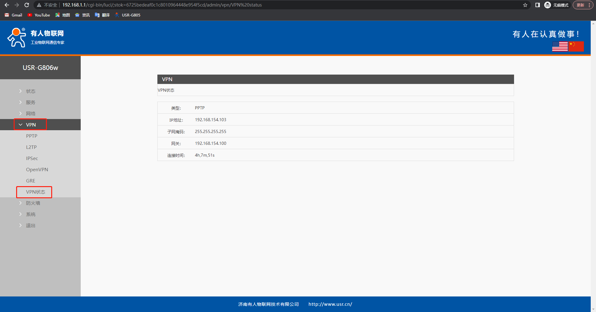 設(shè)備啟動(dòng)后,重新登錄內(nèi)置網(wǎng)頁(yè),連接VPN。