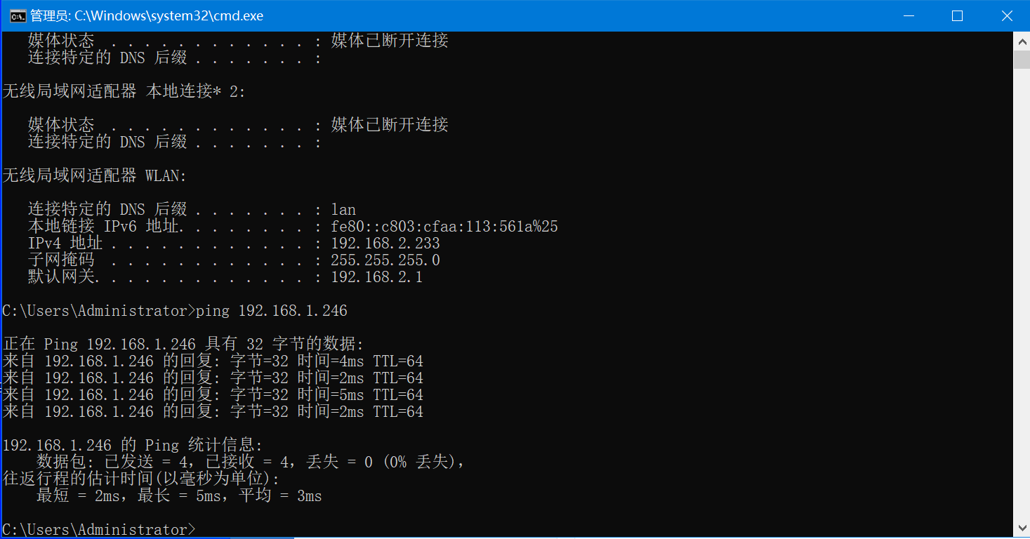 全部設(shè)置完成后,兩臺(tái)電腦互相ping對(duì)端電腦(注意:電腦多網(wǎng)卡時(shí)請(qǐng)帶對(duì)應(yīng)的網(wǎng)卡ping)。