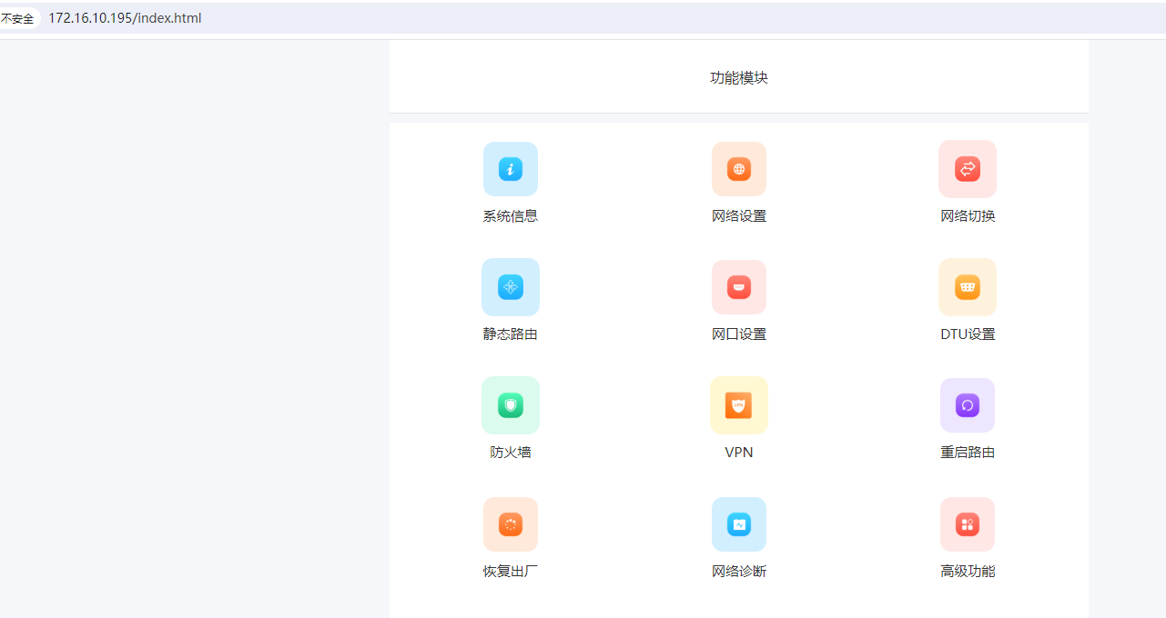 1、 首次使用 USR-G815 設備時,可以通過 PC 連接 USR-G815 的 LAN 口,自動獲取同網(wǎng)段的IP 192.168.1.X,瀏覽器輸入G815的LAN IP:192.168.1.1進入內(nèi)置網(wǎng)頁。