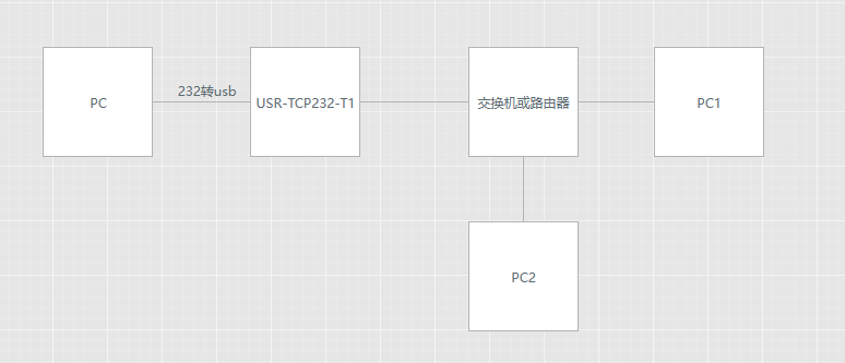 USR-TCP232-T1在評估板上用232串口接USB-RS232轉USB串口線接到電腦USB口,然后產(chǎn)品接5V電源適配器。電腦打開設置軟件。