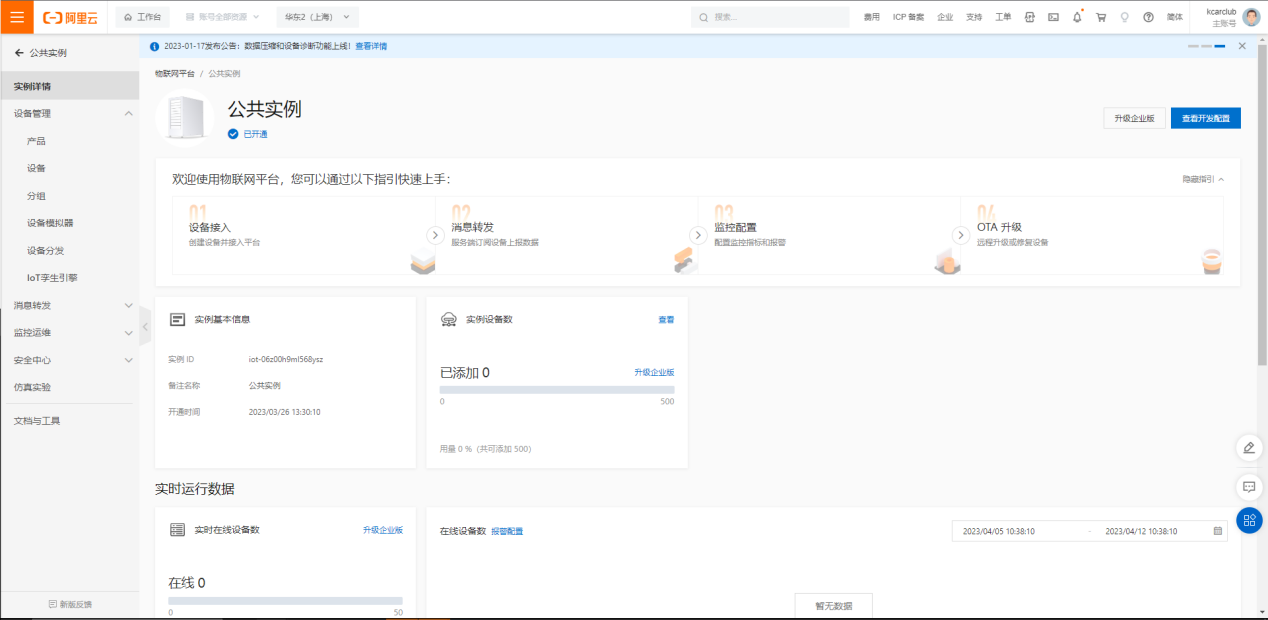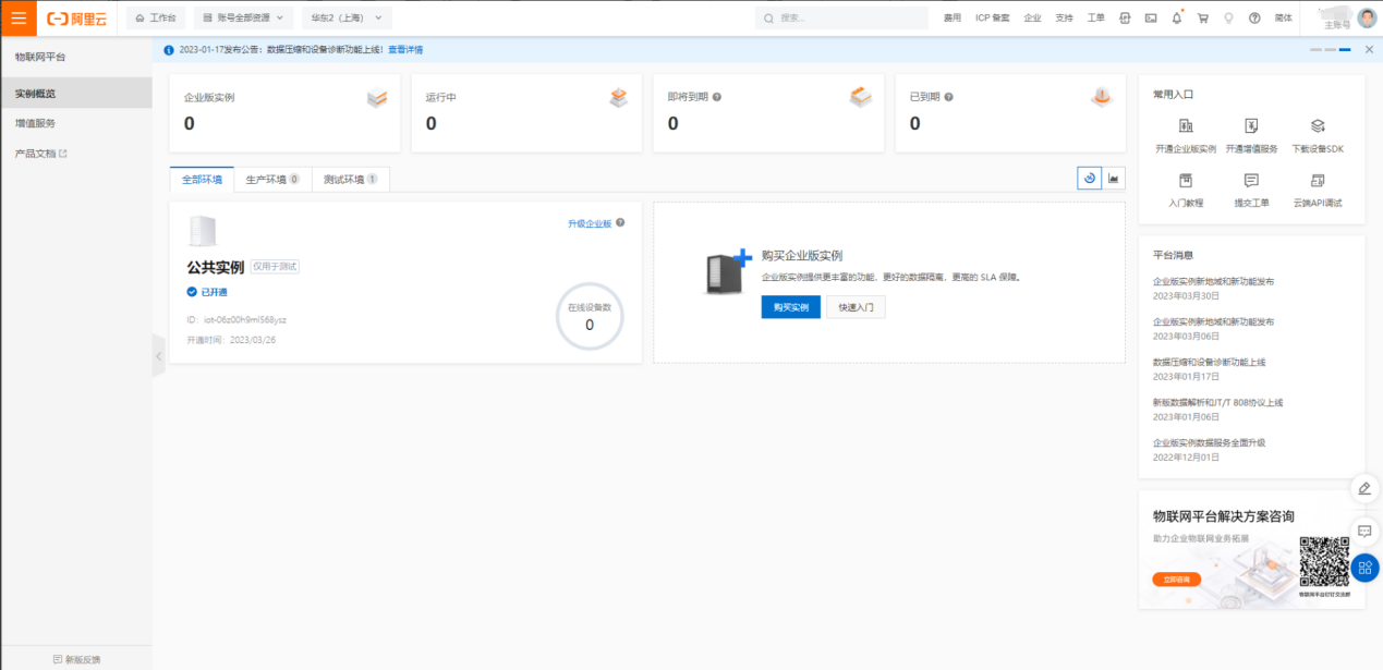 1、進(jìn)入物聯(lián)網(wǎng)平臺,點(diǎn)進(jìn)公共實(shí)例