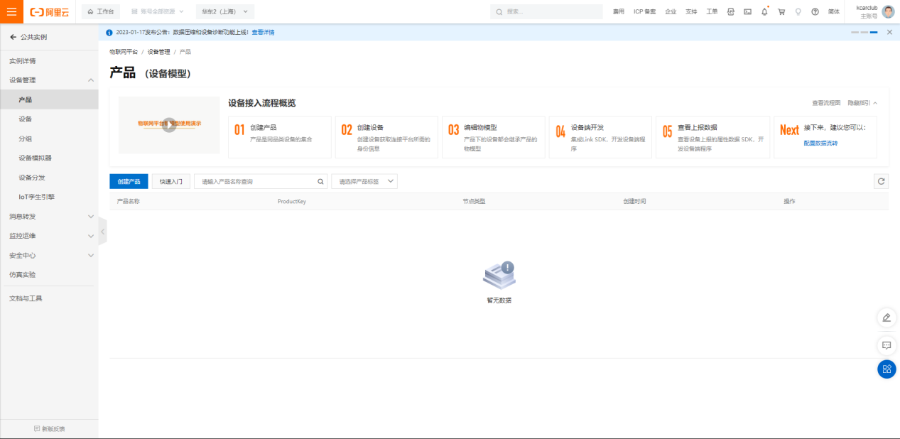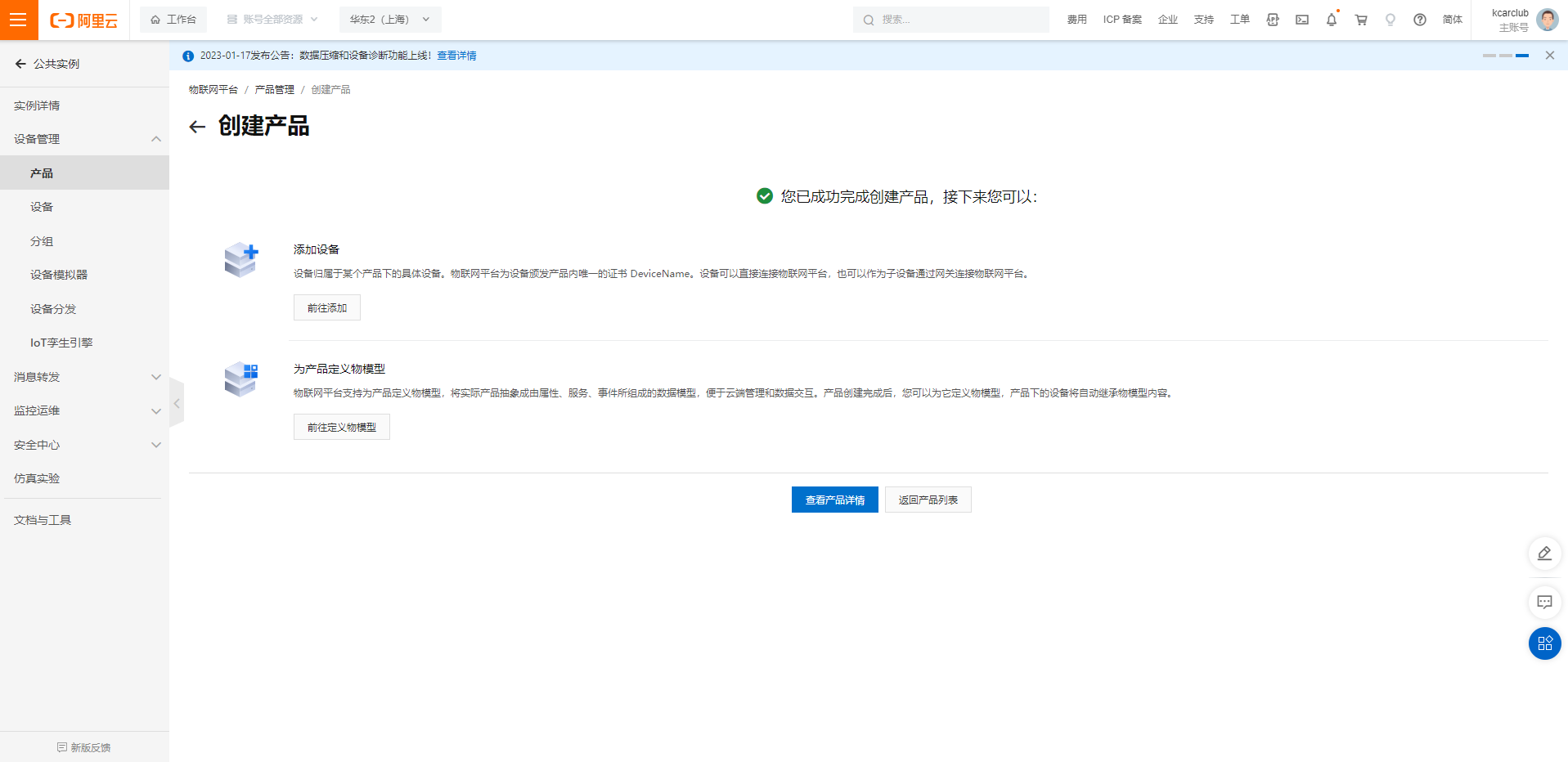 2、在設(shè)備管理-產(chǎn)品中創(chuàng)建產(chǎn)品