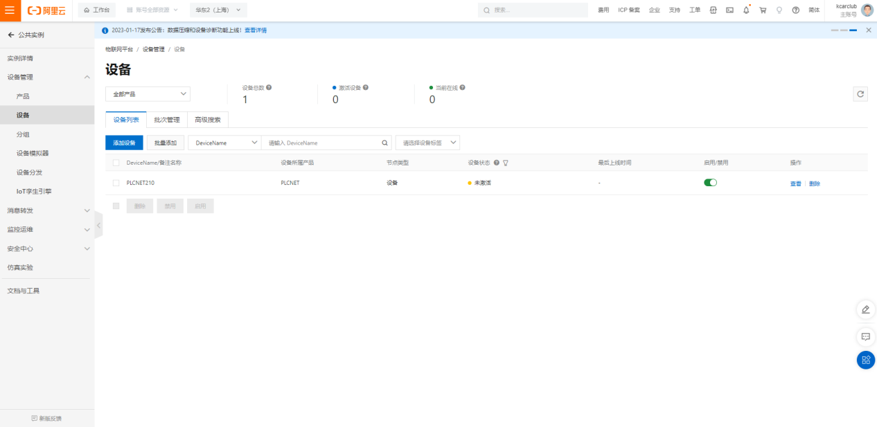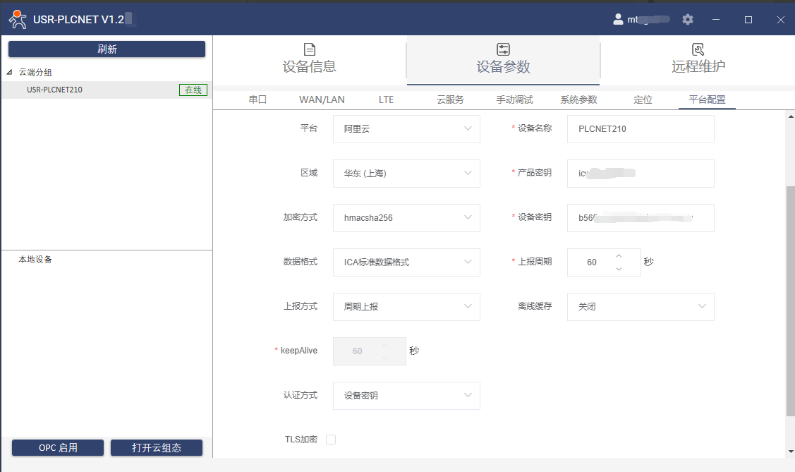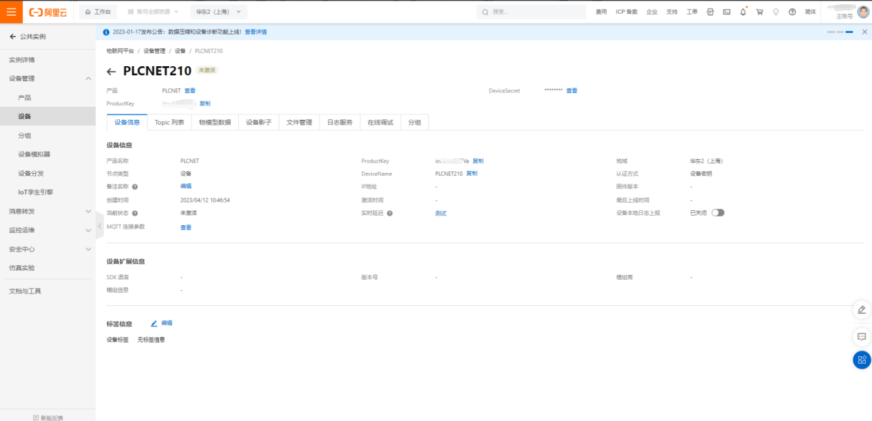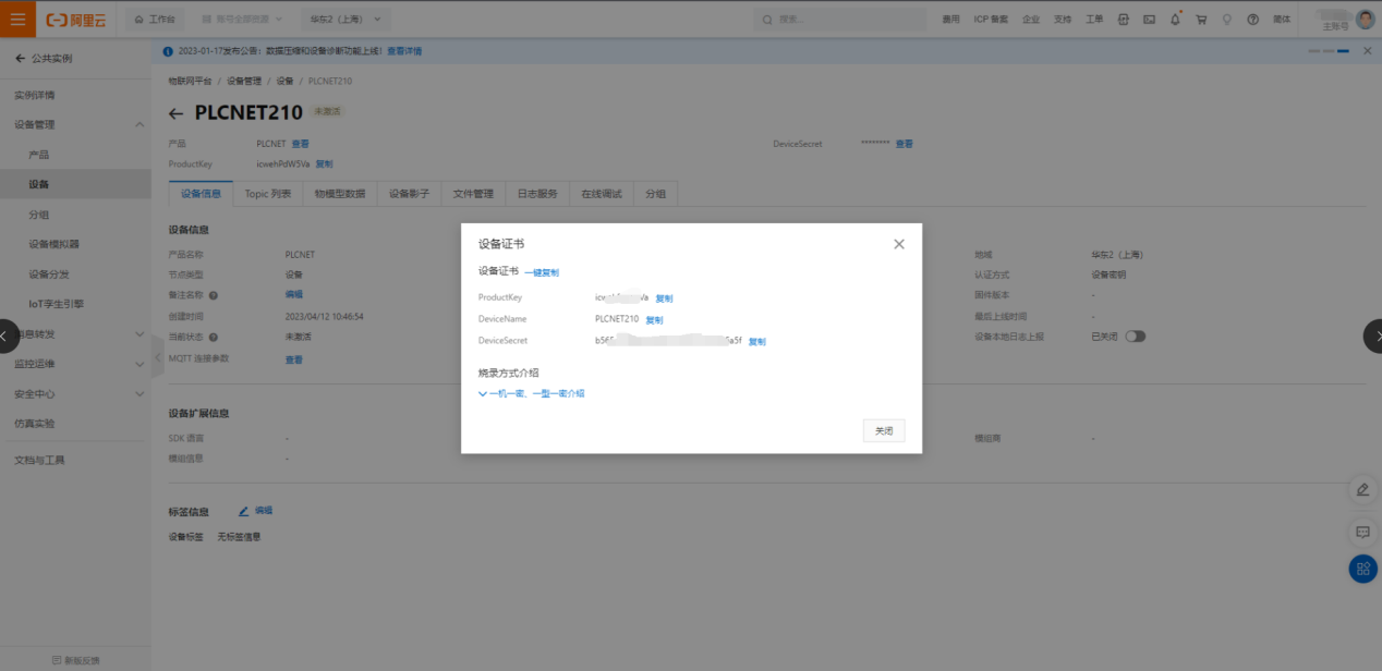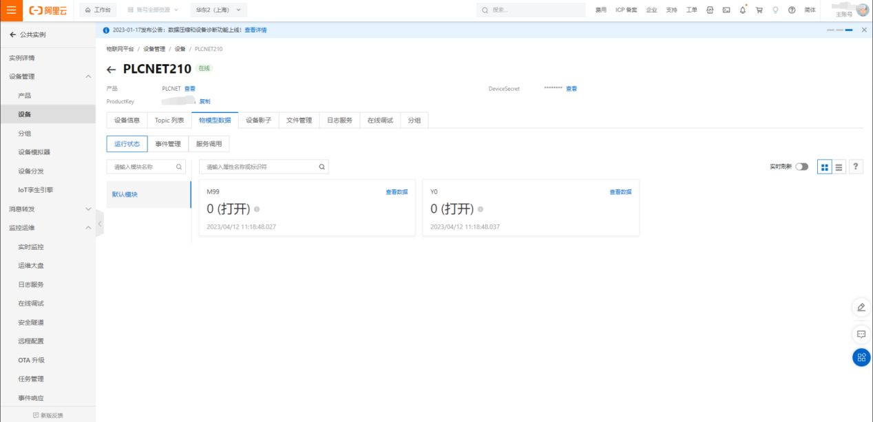 PLCNET網(wǎng)關(guān)連接阿里云顯示數(shù)據(jù)與下發(fā)調(diào)試示例