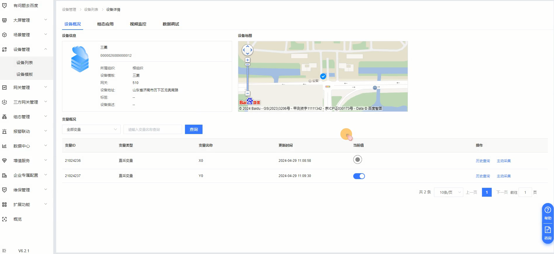 7、網(wǎng)關(guān)重新駐網(wǎng)上線后,點(diǎn)擊設(shè)備管理-設(shè)備列表,點(diǎn)擊設(shè)備名稱進(jìn)入設(shè)備概覽可查看讀取到的plc數(shù)據(jù)