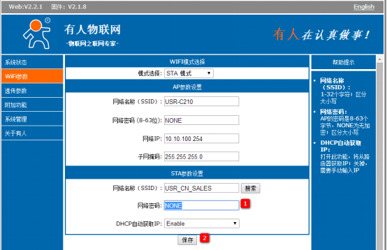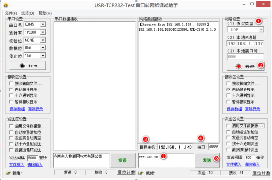 USR-C210連接無線路由器進(jìn)行局域網(wǎng)通信