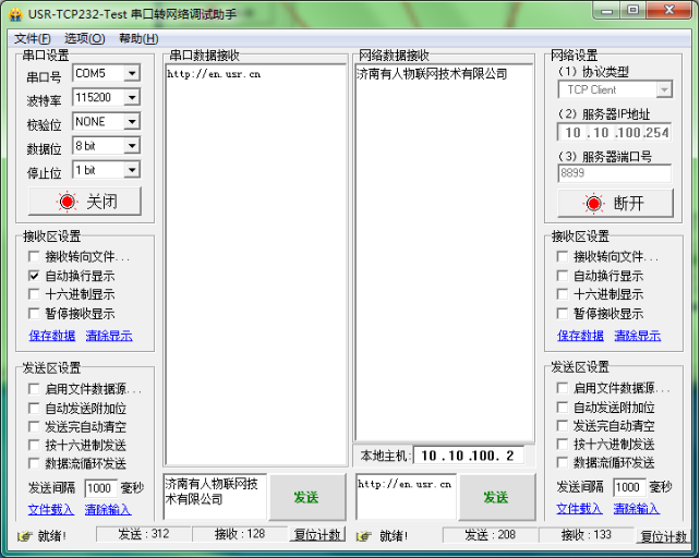 3:打開USR-TCP232-TEST軟件測試