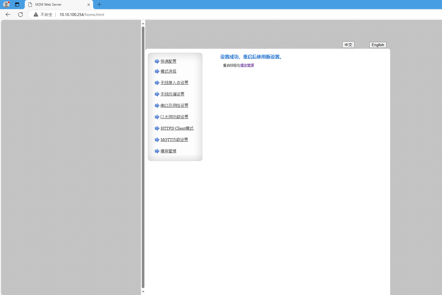 3、網(wǎng)頁(yè)設(shè)置完參數(shù),重啟模塊。