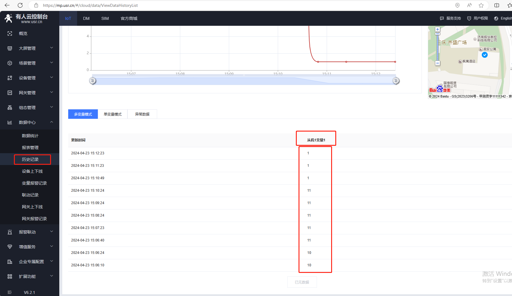 點開數(shù)據(jù)中心,點擊歷史記錄,可以查看有人云采集變量的歷史記錄。