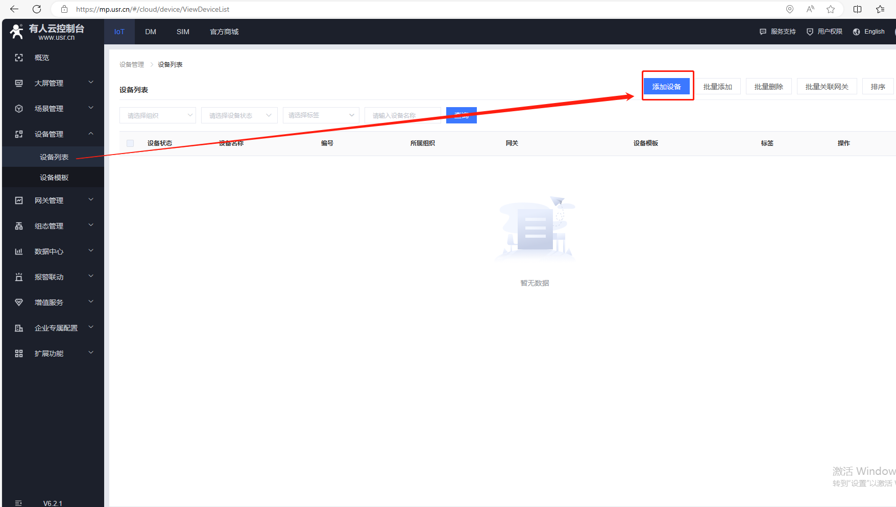 設(shè)備列表,點(diǎn)擊添加設(shè)備。