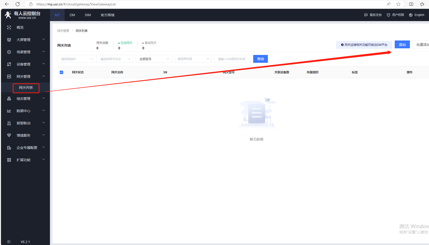 (1)打開有人云的網(wǎng)關(guān)列表,點(diǎn)擊添加。
