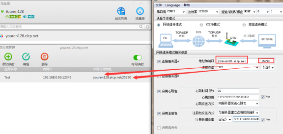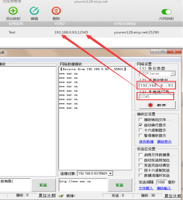 8.使用有人Test調(diào)試助手軟件測(cè)試GPRS DTU串口到網(wǎng)絡(luò)數(shù)據(jù)收發(fā)情況。