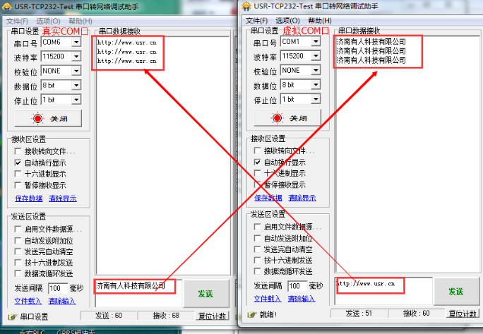 10.使用Test調(diào)試助手軟件測(cè)試GM3串口到虛擬COM口數(shù)據(jù)收發(fā)情況。