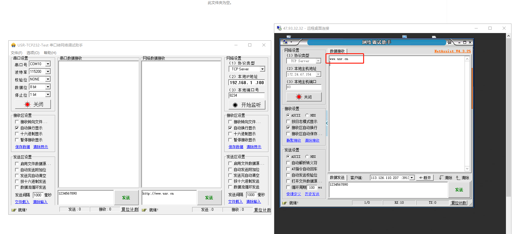 1、打開遠(yuǎn)程桌面,打開網(wǎng)絡(luò)助手,協(xié)議類型做TCP server,端口60,點擊連接。