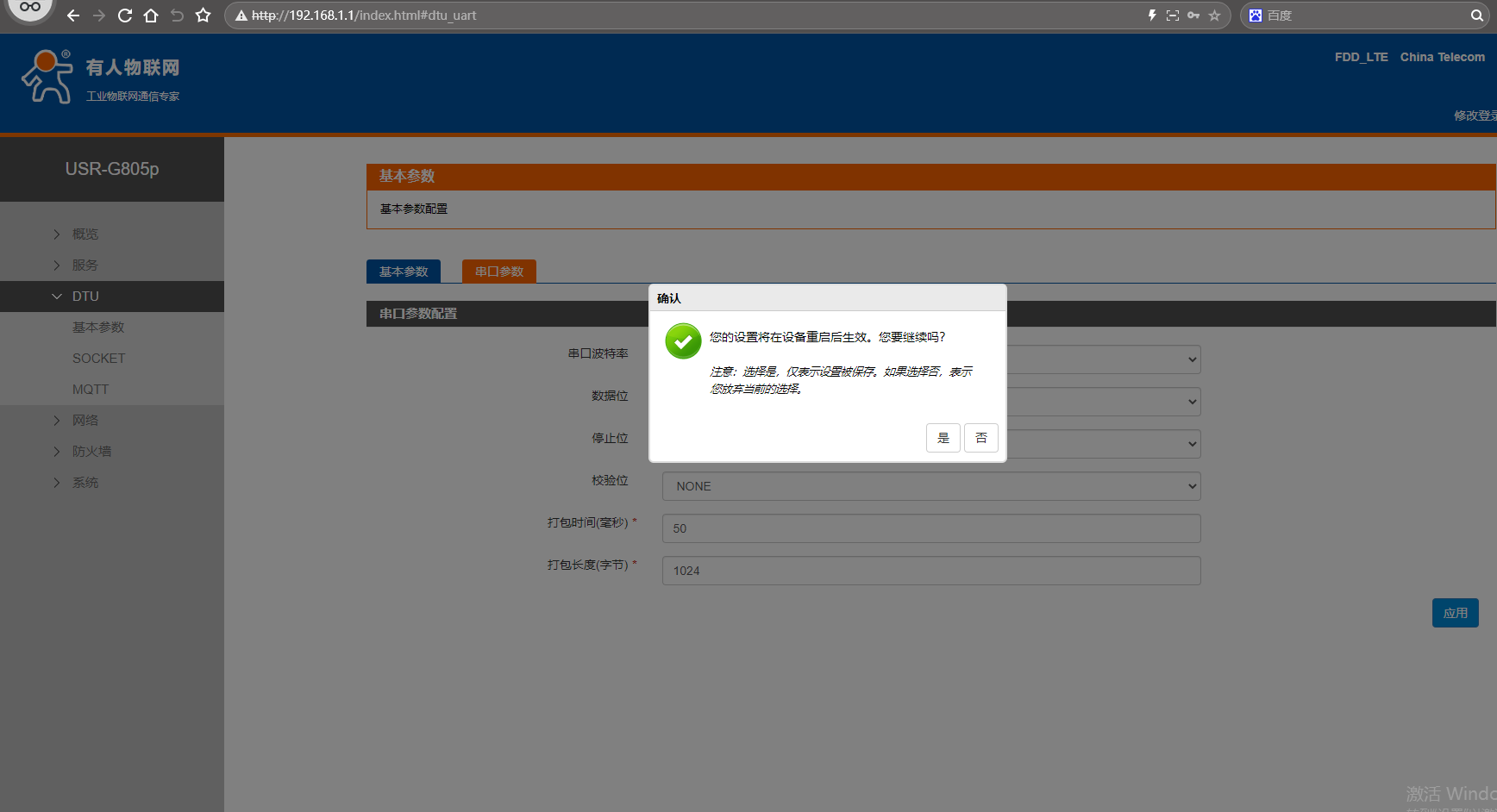 三、USR-G805p網(wǎng)頁參數(shù)設(shè)置