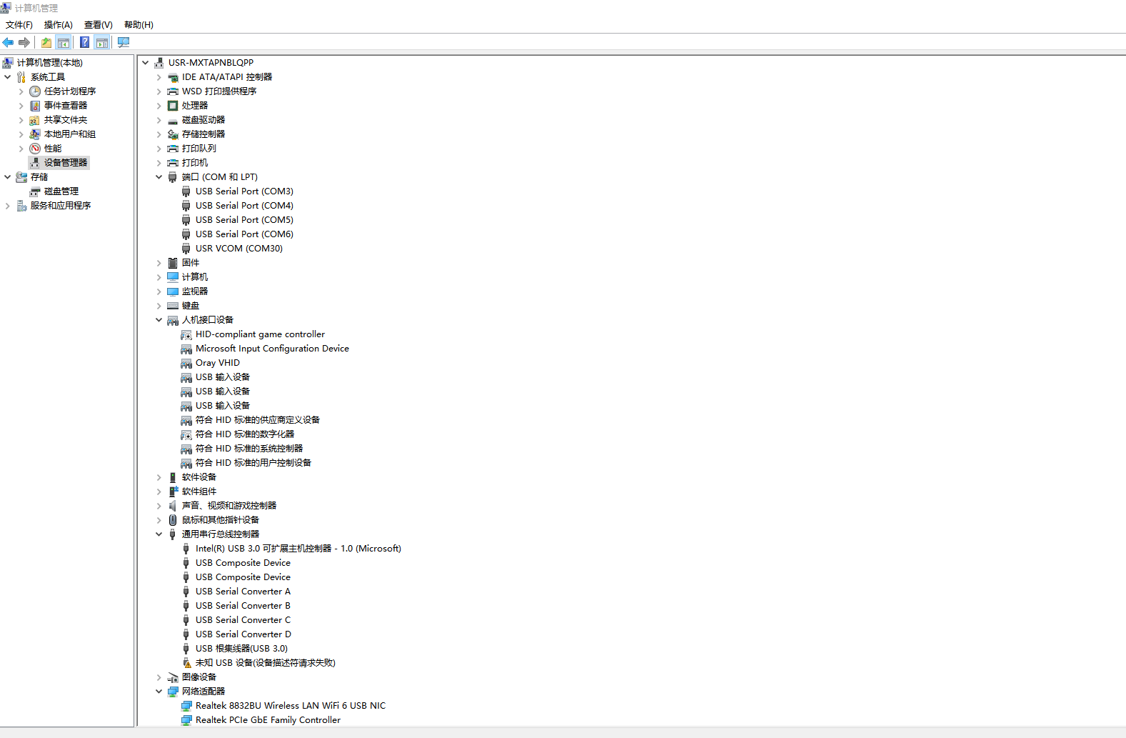 電腦鼠標(biāo)點(diǎn)擊計(jì)算機(jī)管理,右擊,點(diǎn)開(kāi)設(shè)備管理器,點(diǎn)擊端口,查看接USR-G805p的USB-RS485串口線COM口號(hào),COM10。