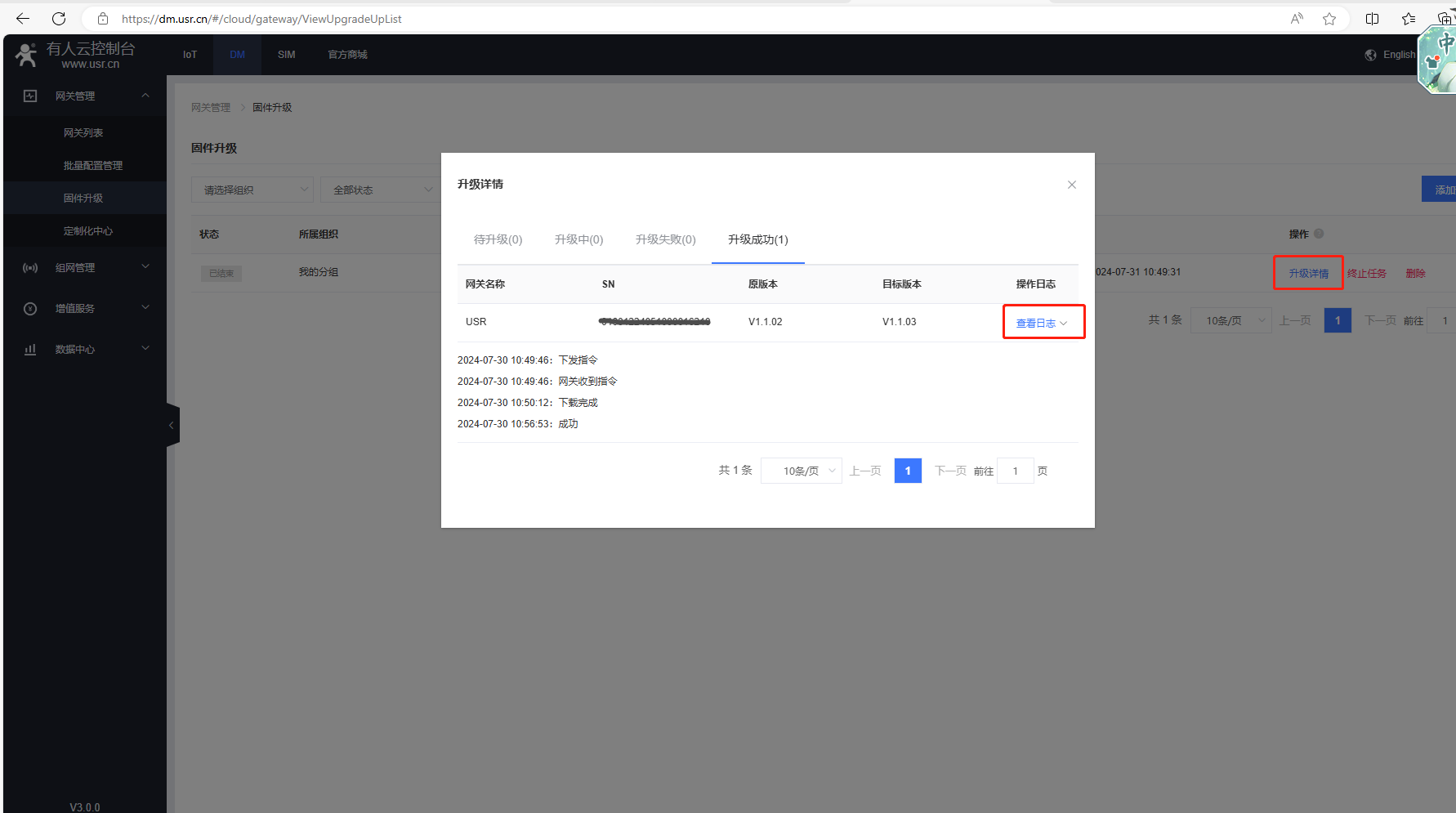 (3)升級(jí)成功,可以點(diǎn)擊操作日志,查看日志。