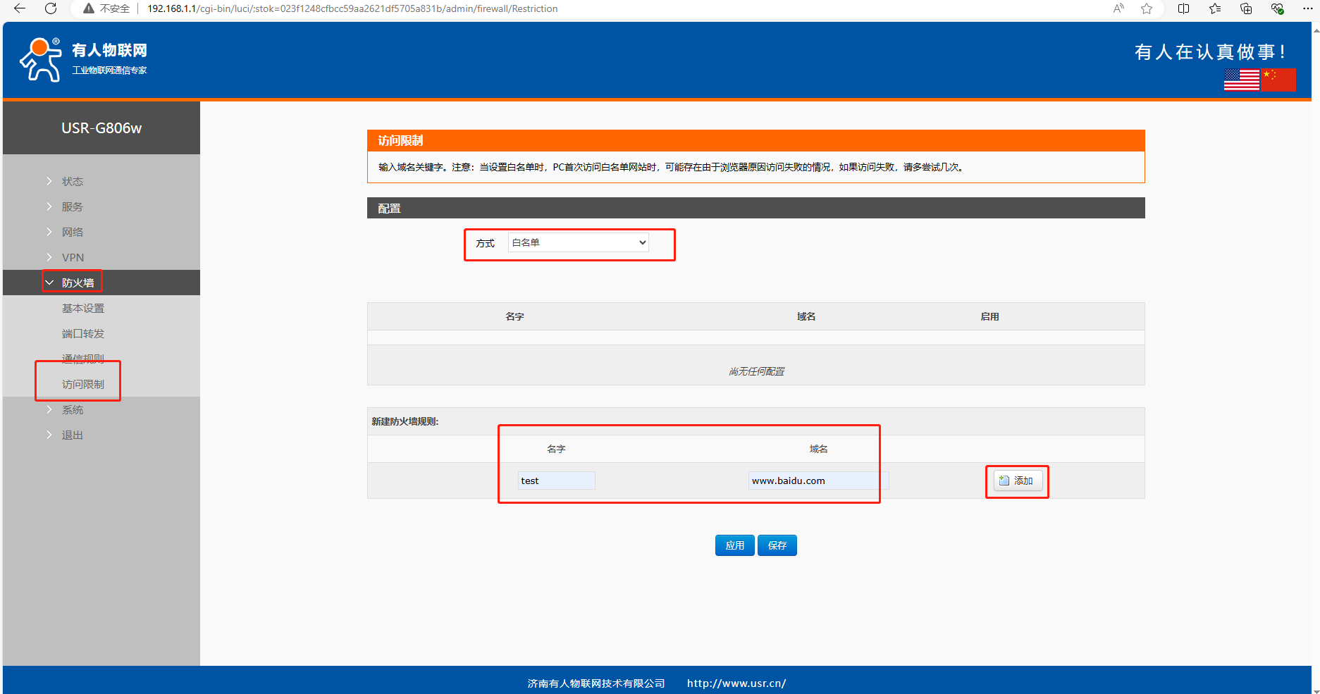 1、登陸USR-G806w網(wǎng)頁(yè)