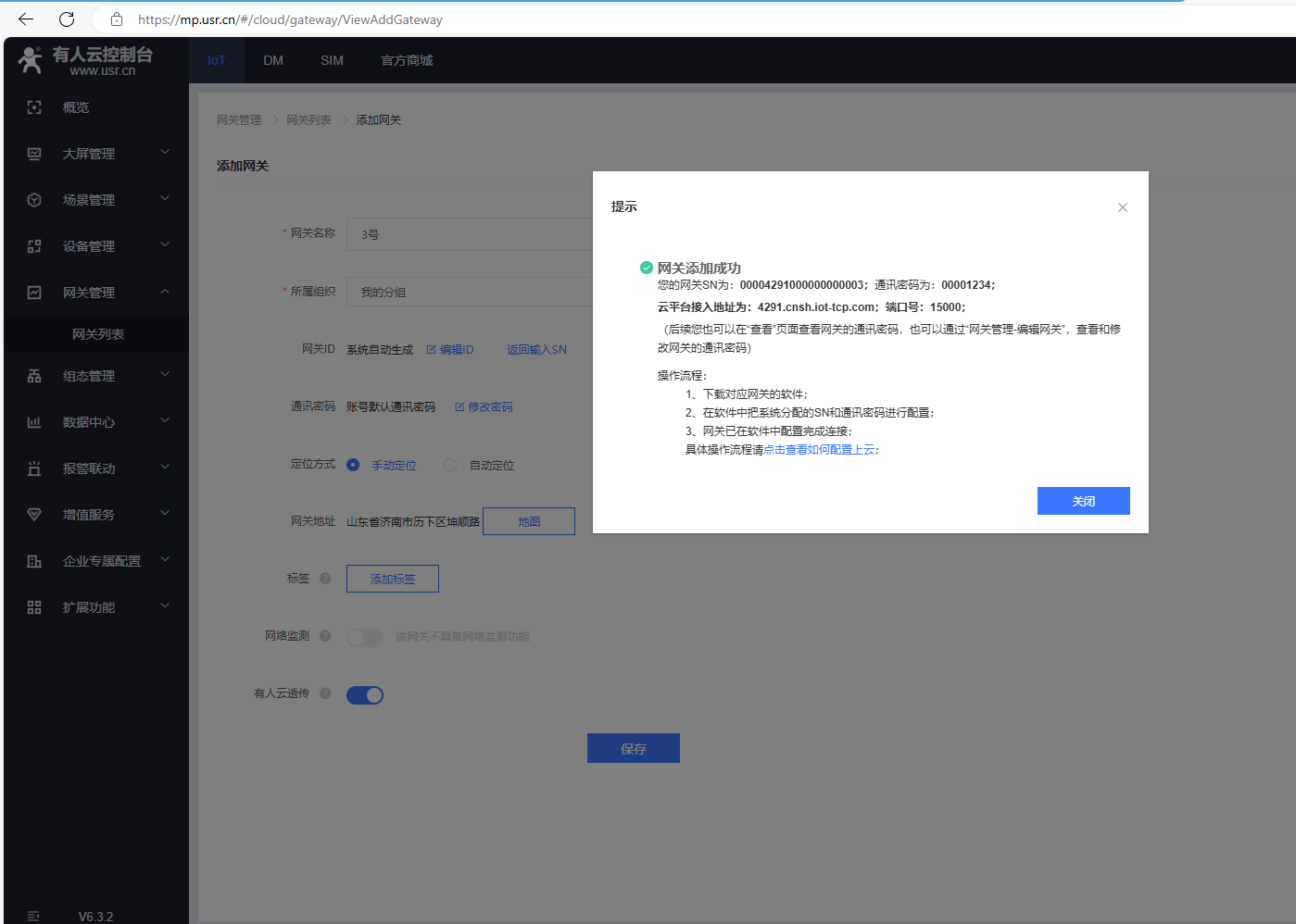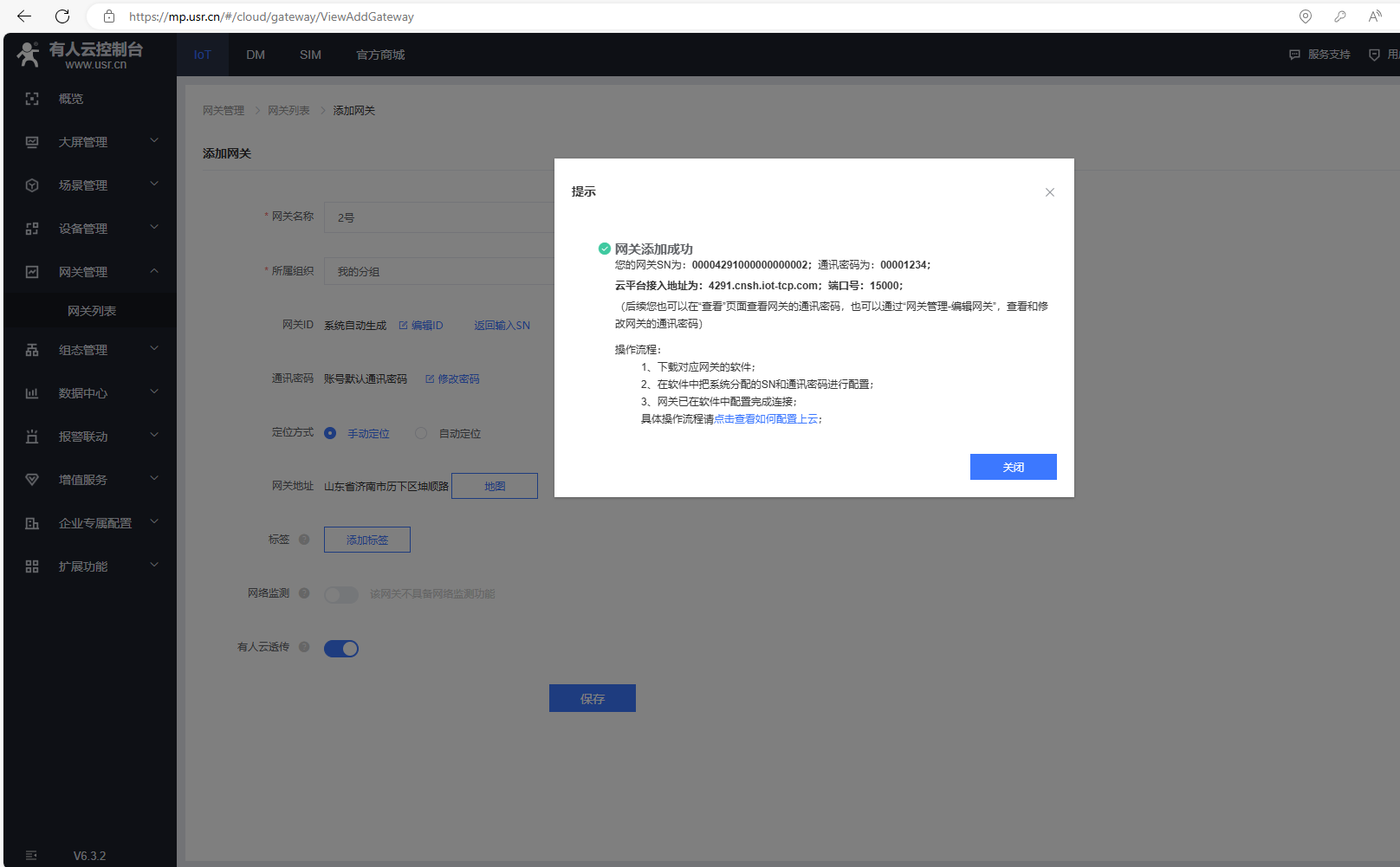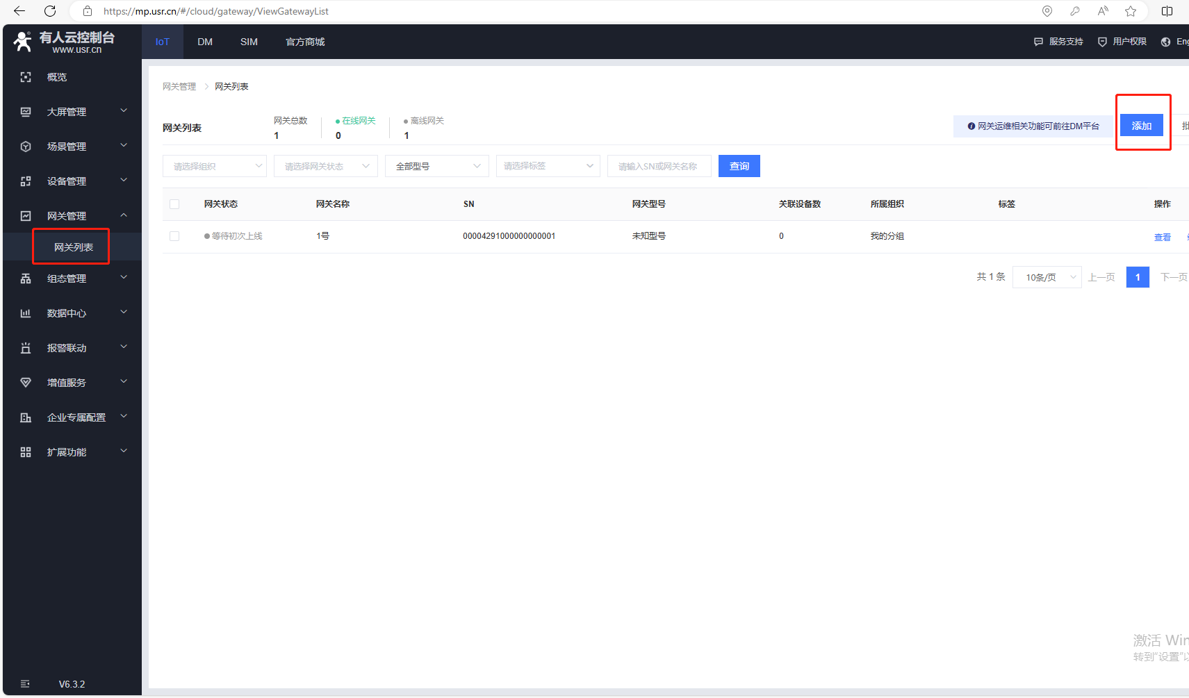 添加完,有人云,網(wǎng)關列表,USR-VCOM在線。