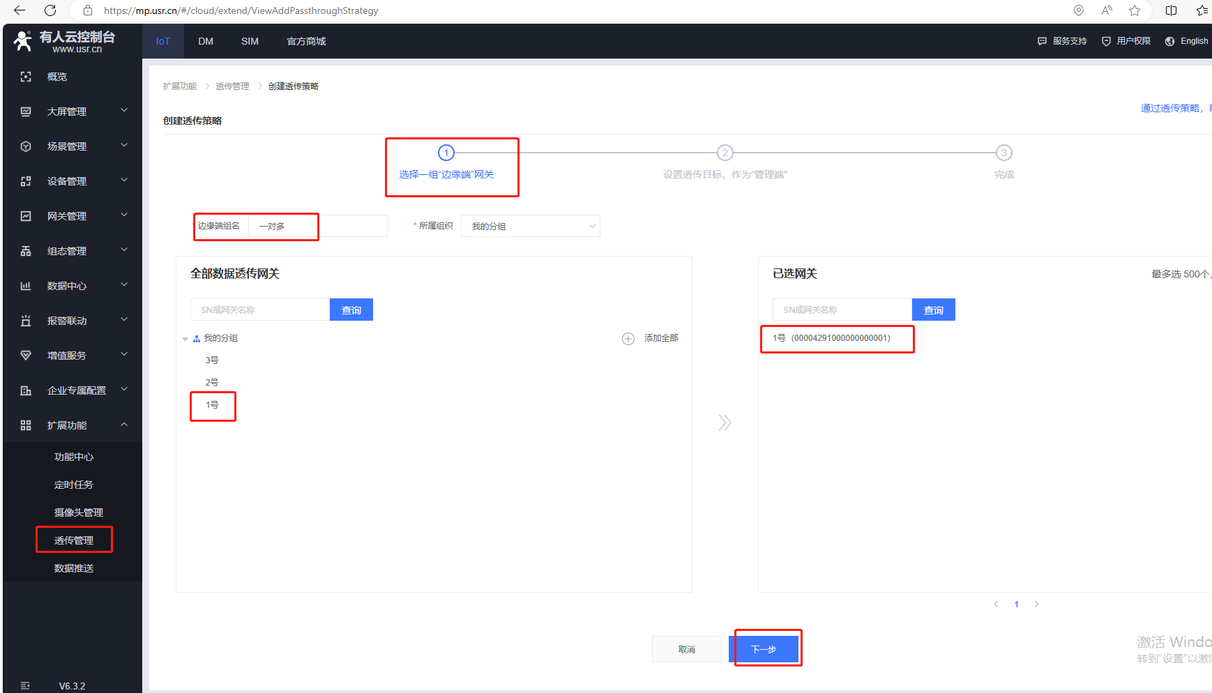 1、擴展功能,透傳管理,創(chuàng)建一個透傳策略