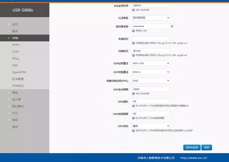 2、USR-G806s對照服務(wù)器配置參數(shù),配置完點(diǎn)擊應(yīng)用。