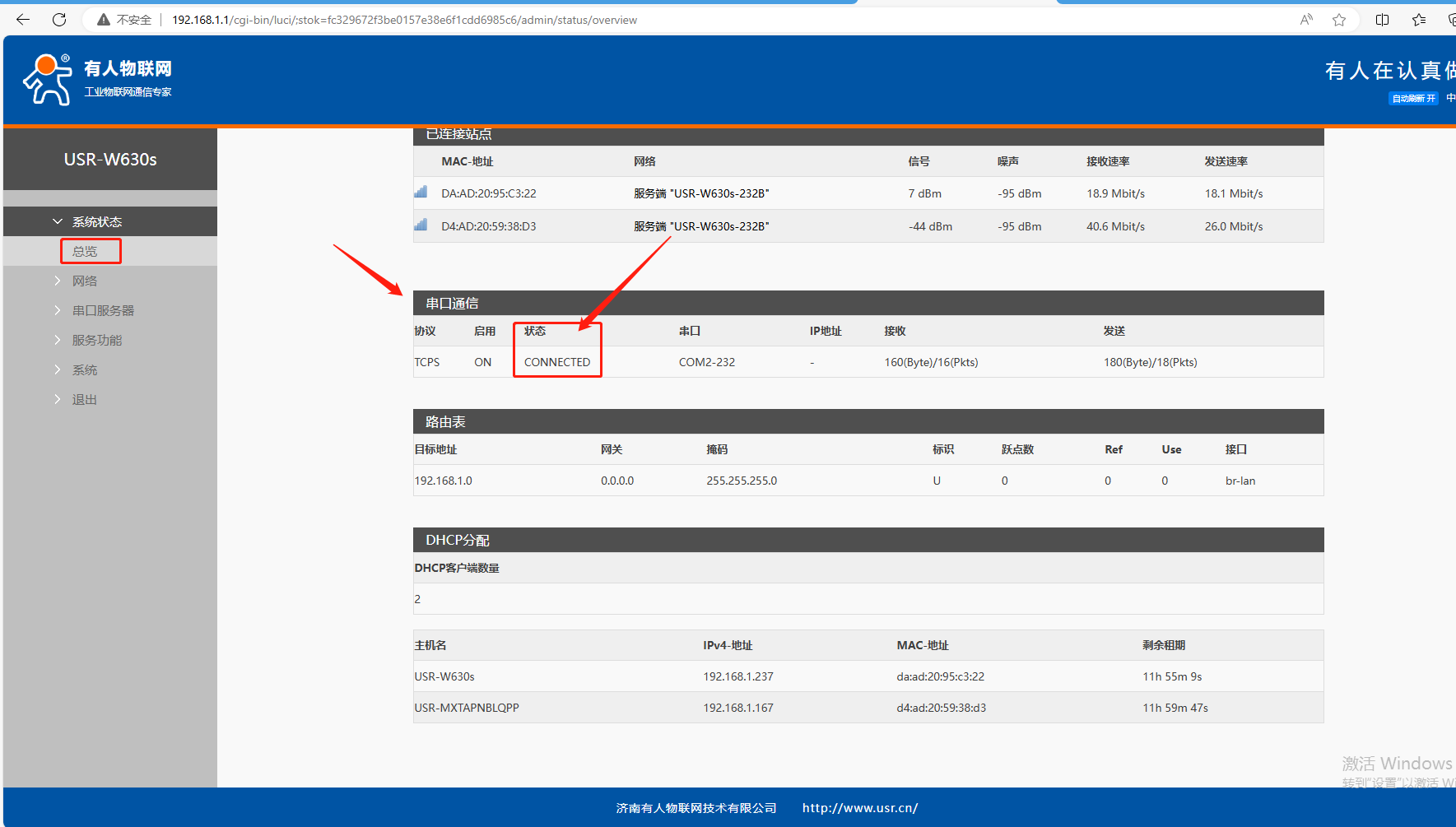 4、USR-W630s AP網(wǎng)頁(yè)總覽,可以查看TCP連接狀態(tài)